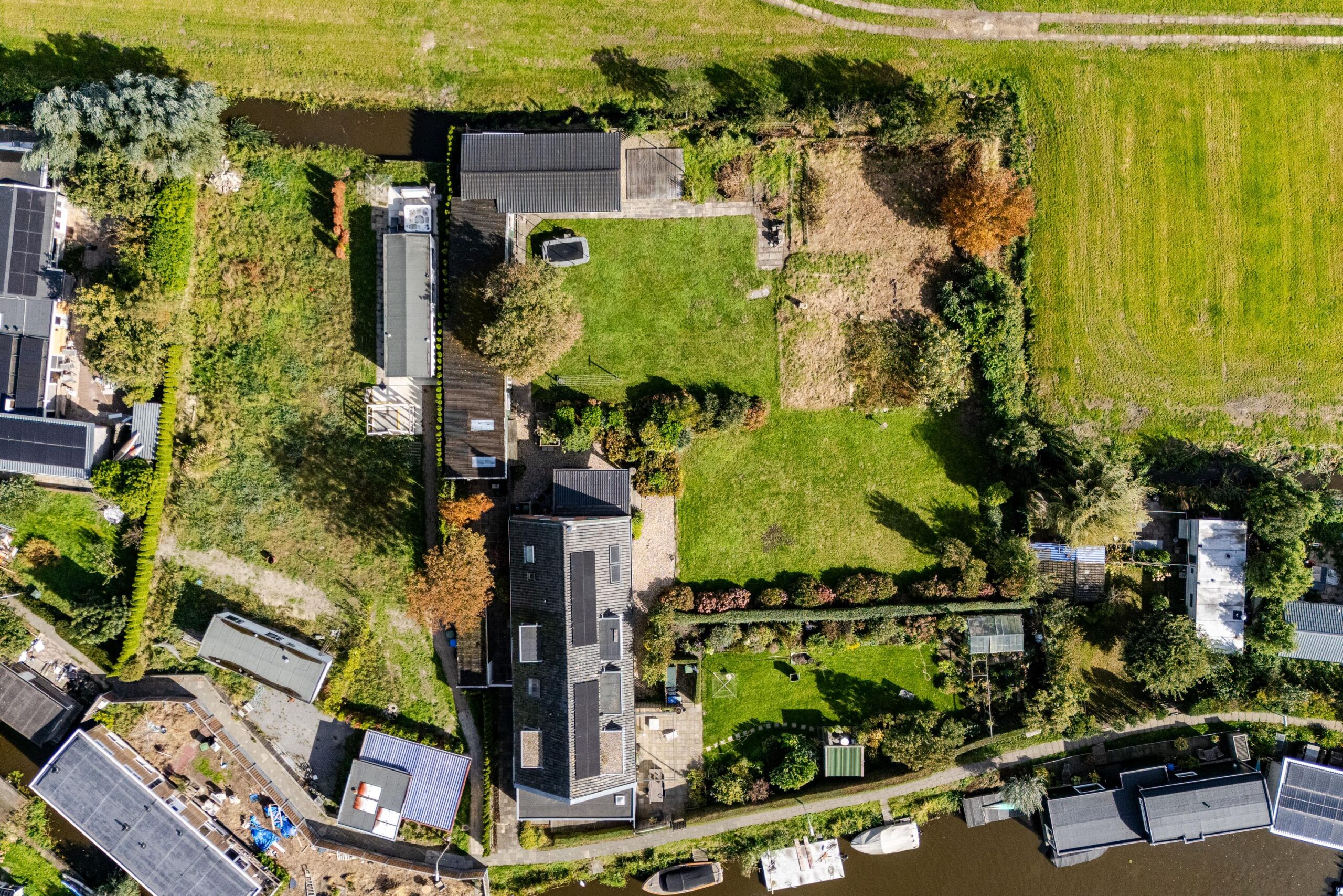 Naast de woning liggen verschillende bijgebouwen, samen goed voor meer dan 112 m², die benut kunnen worden als schuur, werkplaats, opslag, hobbyruimte of zelfs een B&B. De tuin strekt zich wijd uit rondom het huis en biedt zon, privacy en eindeloze mogelijkheden voor ontspanning, tuinieren – een eigen moestuin – of het houden van dieren. Aan het water bevindt zich bovendien een eigen ligplaats voor een boot, waardoor je direct toegang hebt tot prachtig vaargebied.