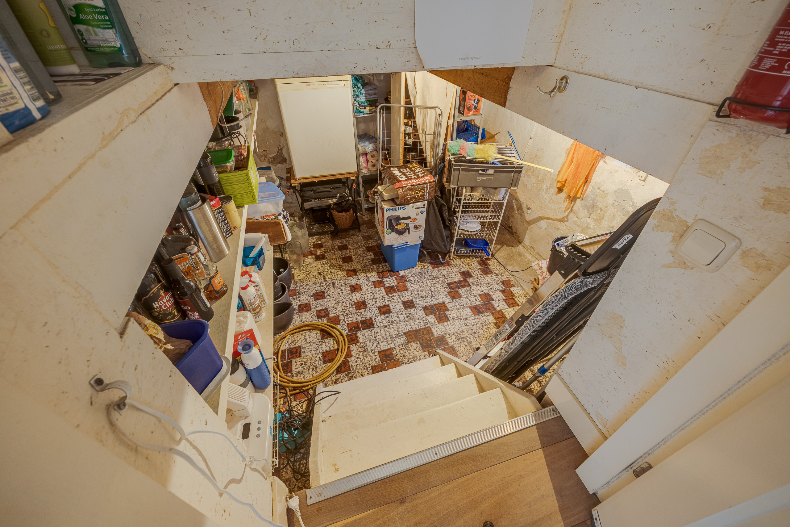 Op de begane grond bevinden zich de entree, het toilet, een slaapkamer met inloopkast en aangrenzende moderne badkamer, de keuken, open werkruimte, de royale woonkamer met houtkachel en openslaande deuren naar de tuin, veranda en de televisiekamer. De eerste verdieping biedt een ruime overloop, een badkamer inclusief toilet en drie slaapkamers, waaronder een grote hoofdslaapkamer met hoge nok. De praktische kelder dient als extra opslagruimte, en via een losse trap is ook de vliering bereikbaar.
