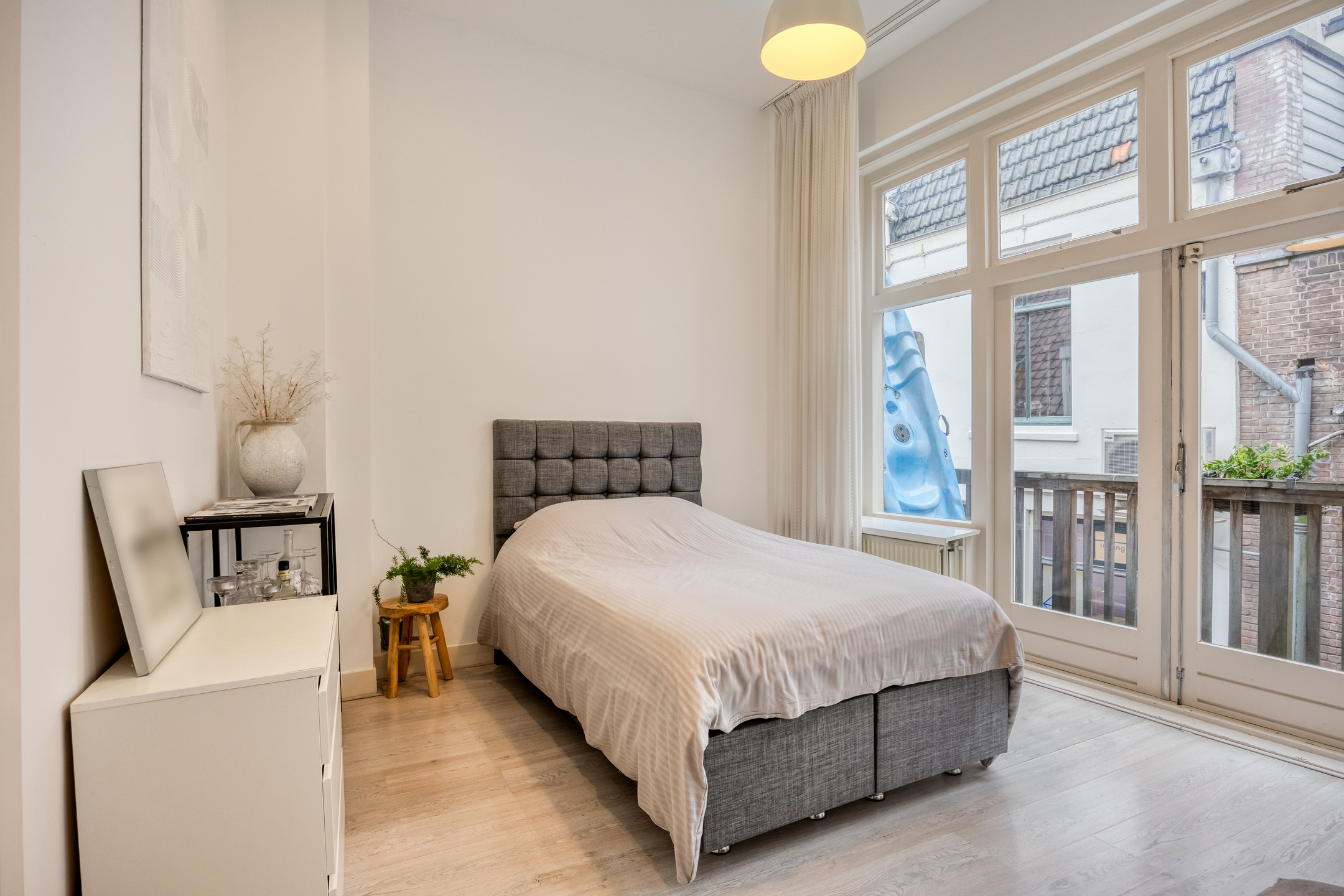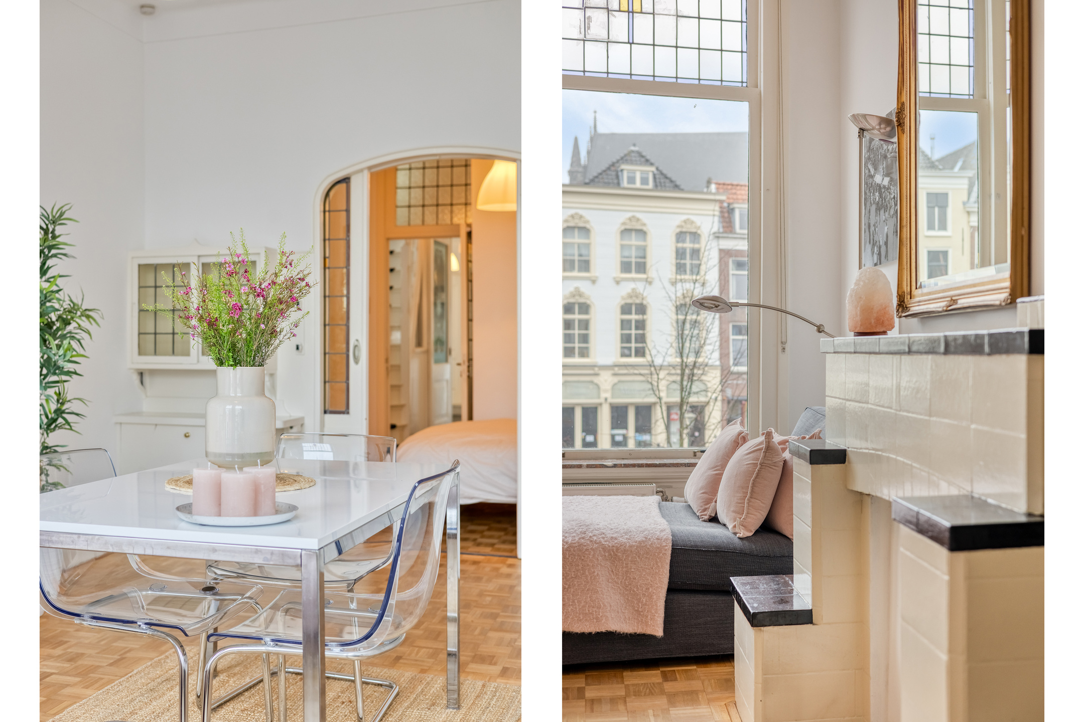 Het monumentale herenhuis dateert uit circa 1650 en combineert eeuwenoude charme met verrassend veel leefruimte, verdeeld over meerdere woonlagen. De ligging aan de gracht en aan vaarwater onderstreept het authentieke karakter, terwijl het aanwezige dakterras een zeldzame en zeer aangename buitenruimte biedt midden in de binnenstad. Originele details, speelse niveauverschillen en de royale opzet maken dit appartement tot een uniek woonobject voor de liefhebber van historie en stedelijk wonen.
