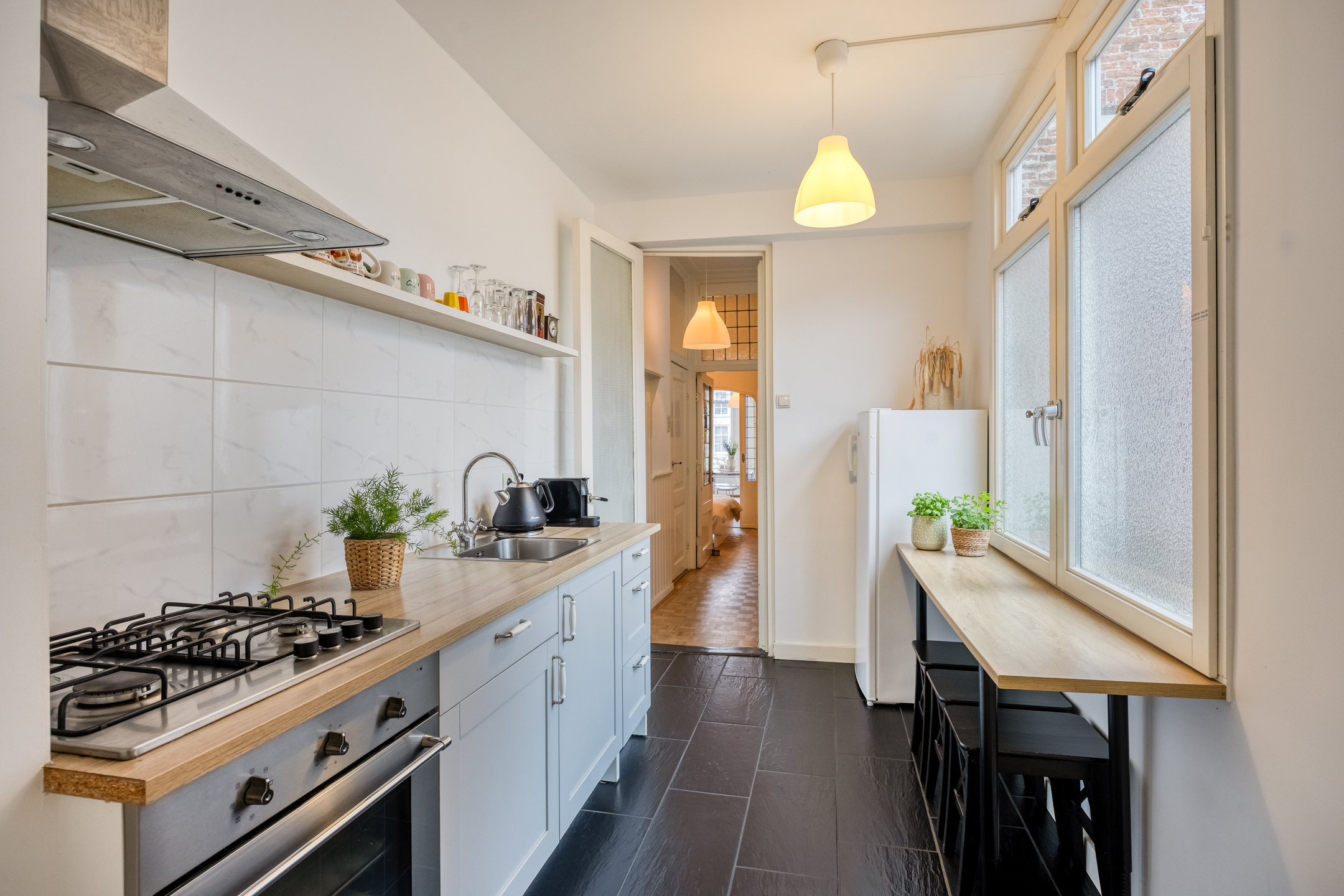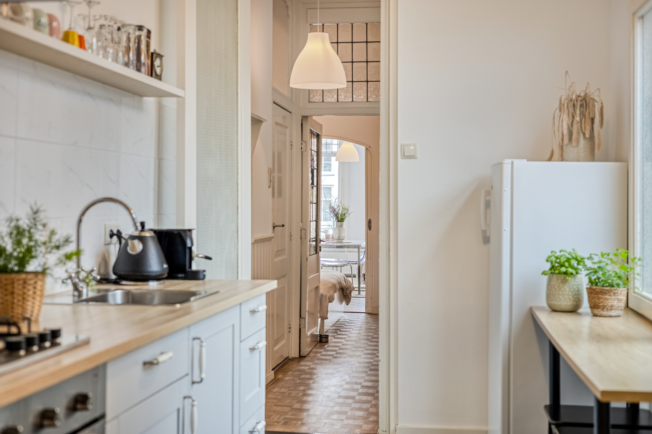 De woning maakt deel uit van een monumentaal pand en is door de jaren heen zorgvuldig bewoond en onderhouden. Positieve aanpassingen en verbeteringen zijn uitgevoerd met respect voor het karakter van het gebouw, waarbij functionaliteit en comfort zijn toegevoegd zonder afbreuk te doen aan de historische uitstraling.