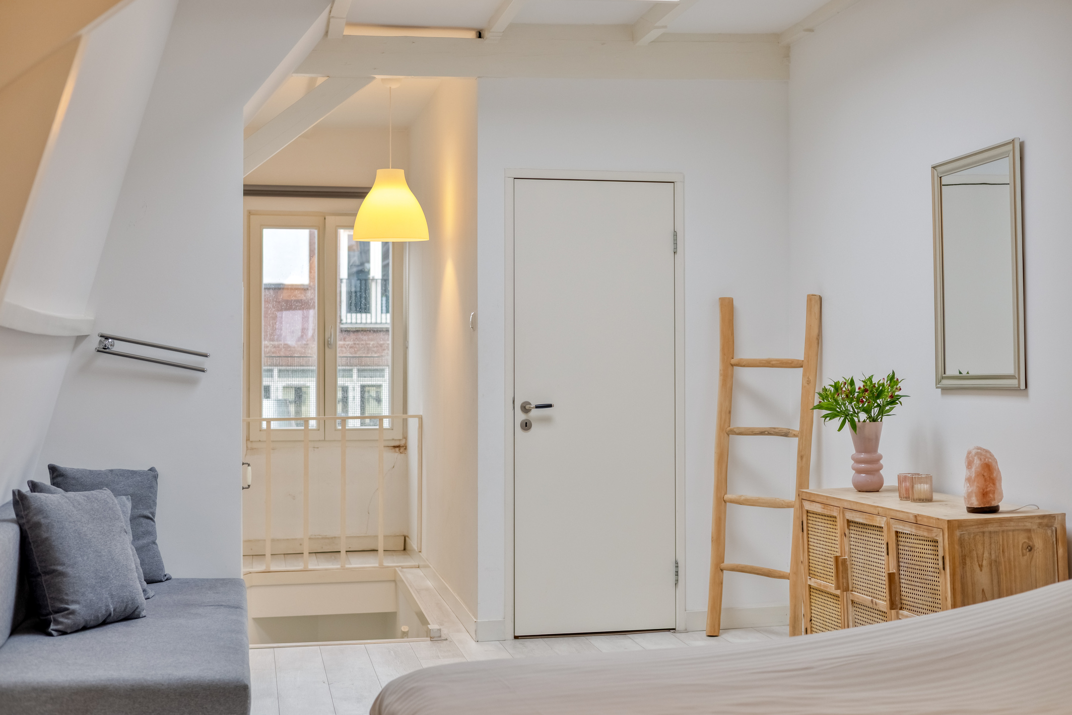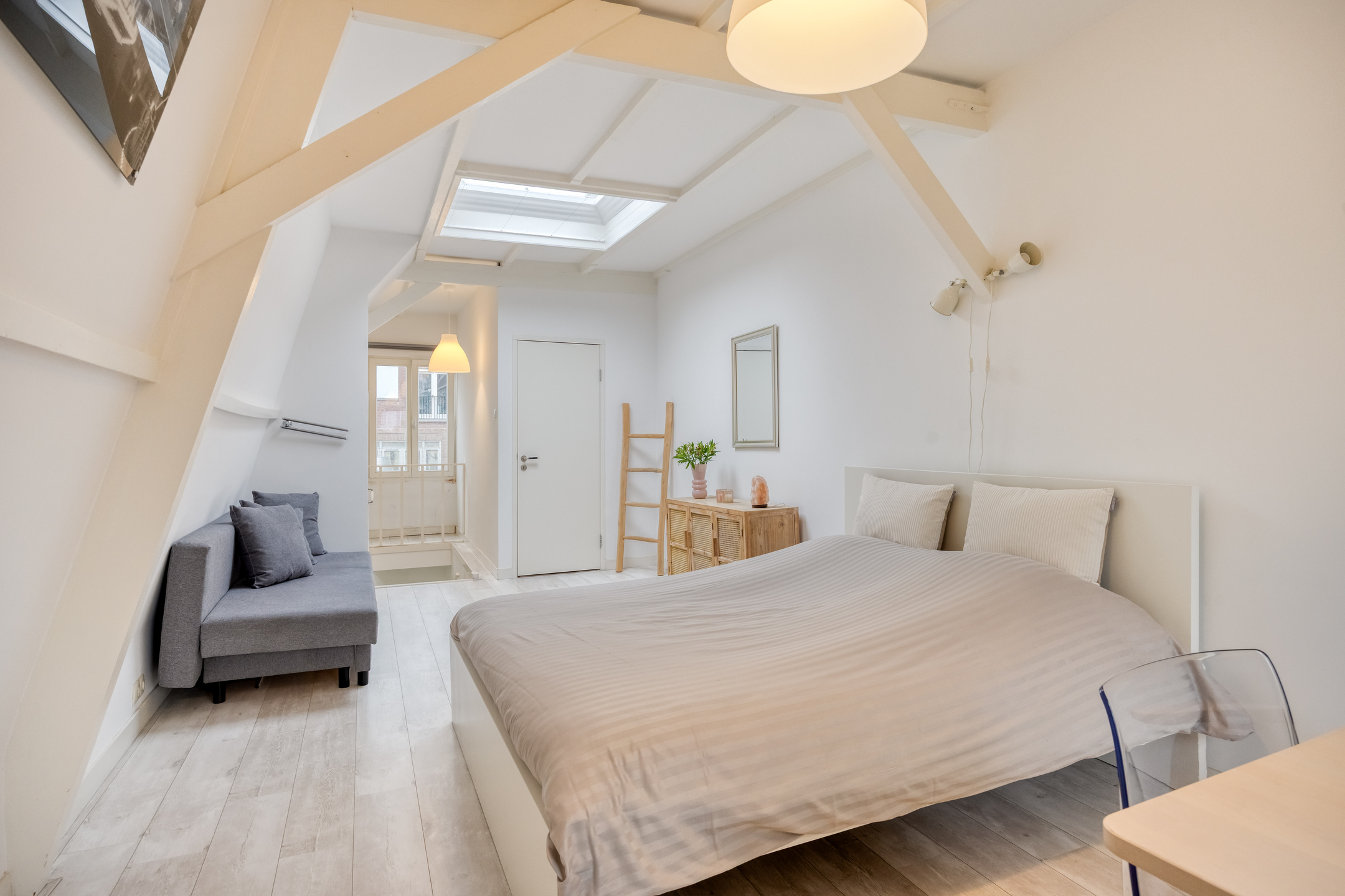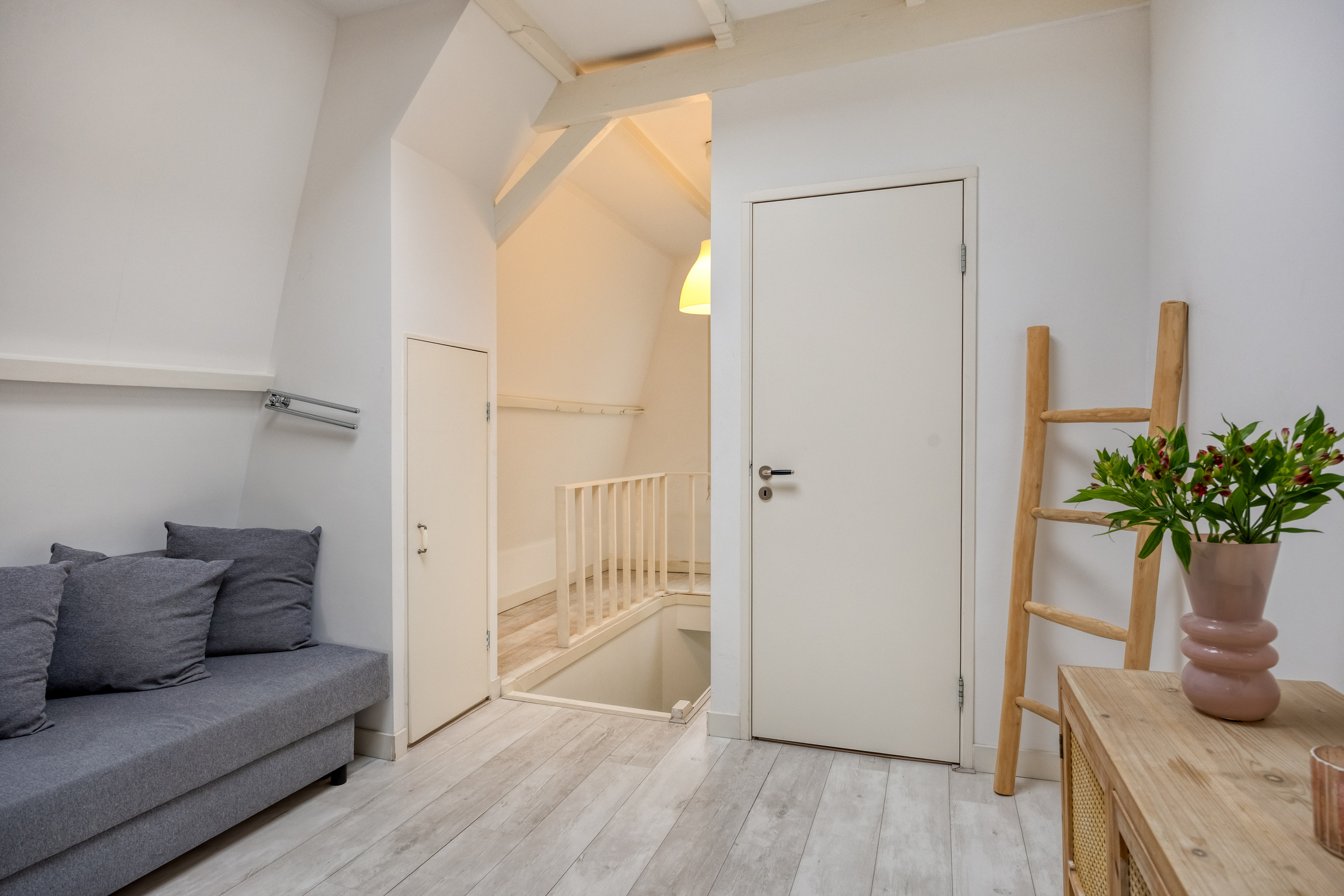 De indeling is speels en royaal, verdeeld over meerdere niveaus. Via de eigen entree op straatniveau leidt een trap naar het souterrain met praktische ruimte en bergruimte en onder het souterrain een kelder. Op de woonverdiepingen bevinden zich de keuken, meerdere slaapkamers en badkamers, verbonden door gangen en overlopen die zorgen voor een prettige routing door de woning. Op de tweede verdieping bevindt zich een dakterras, een heerlijke plek met privacy en uitzicht over de historische bebouwing. Daarnaast is er een entresol die uitstekend dienst kan doen als werkruimte, atelier of extra verblijfsruimte.