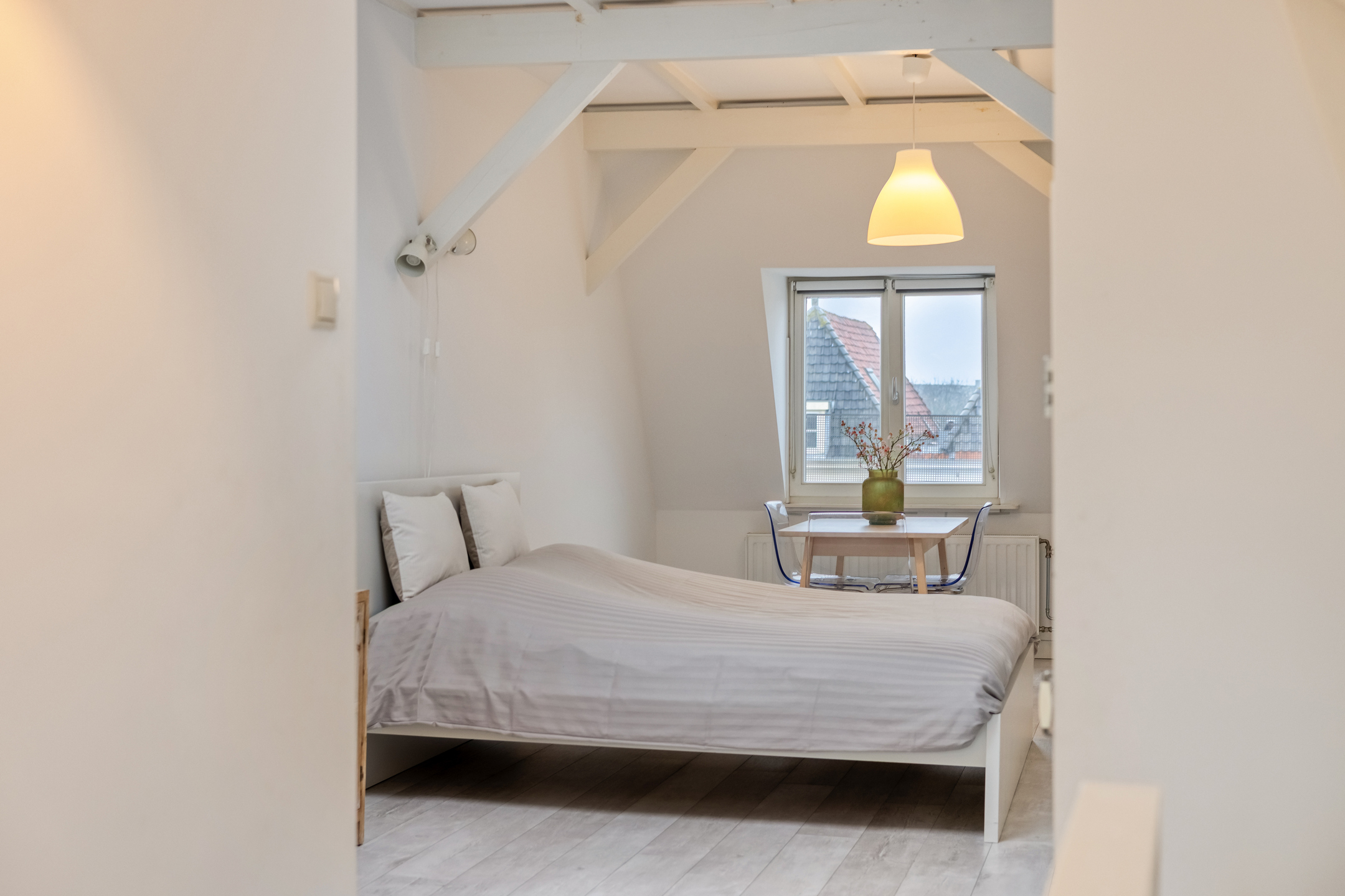 De locatie is zonder meer uitstekend. Dwars Koornbrugsteeg ligt in het hart van de Leidse binnenstad, op steenworp afstand van de Haarlemmerstraat, de Breestraat en het Stadhuisplein. Musea zoals het Rijksmuseum van Oudheden en Museum De Lakenhal, evenals de Leidse grachten en hofjes, bevinden zich op loopafstand. Ook het Plantsoen en de singels bieden groen en ontspanning dichtbij huis. Leiden Centraal Station is per fiets of te voet snel bereikbaar en via de A4 en A44 zijn steden als Den Haag, Amsterdam en Schiphol uitstekend ontsloten.