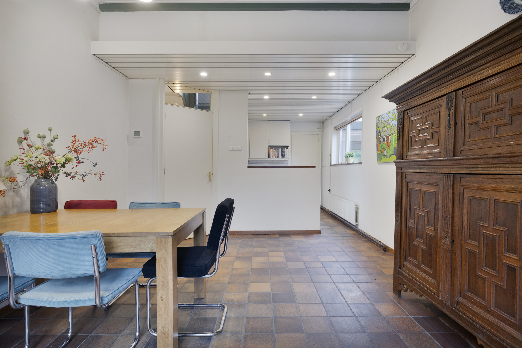 Aan de achterzijde van de woning ligt de keuken met alle ruimte voor de keukenopstelling en een grote eettafel. De deur naar de tuin staat bij mooi weer waarschijnlijk altijd open en zal voor een zoete inval van vrienden en familie zorgen. Aansluitend aan de keuken bevindt zich de bijkeuken met achterdeur naar de tuin. Wasmachine, droger, extra koel-vriescombinatie, wijnklimaatkast: er is ruimte genoeg!