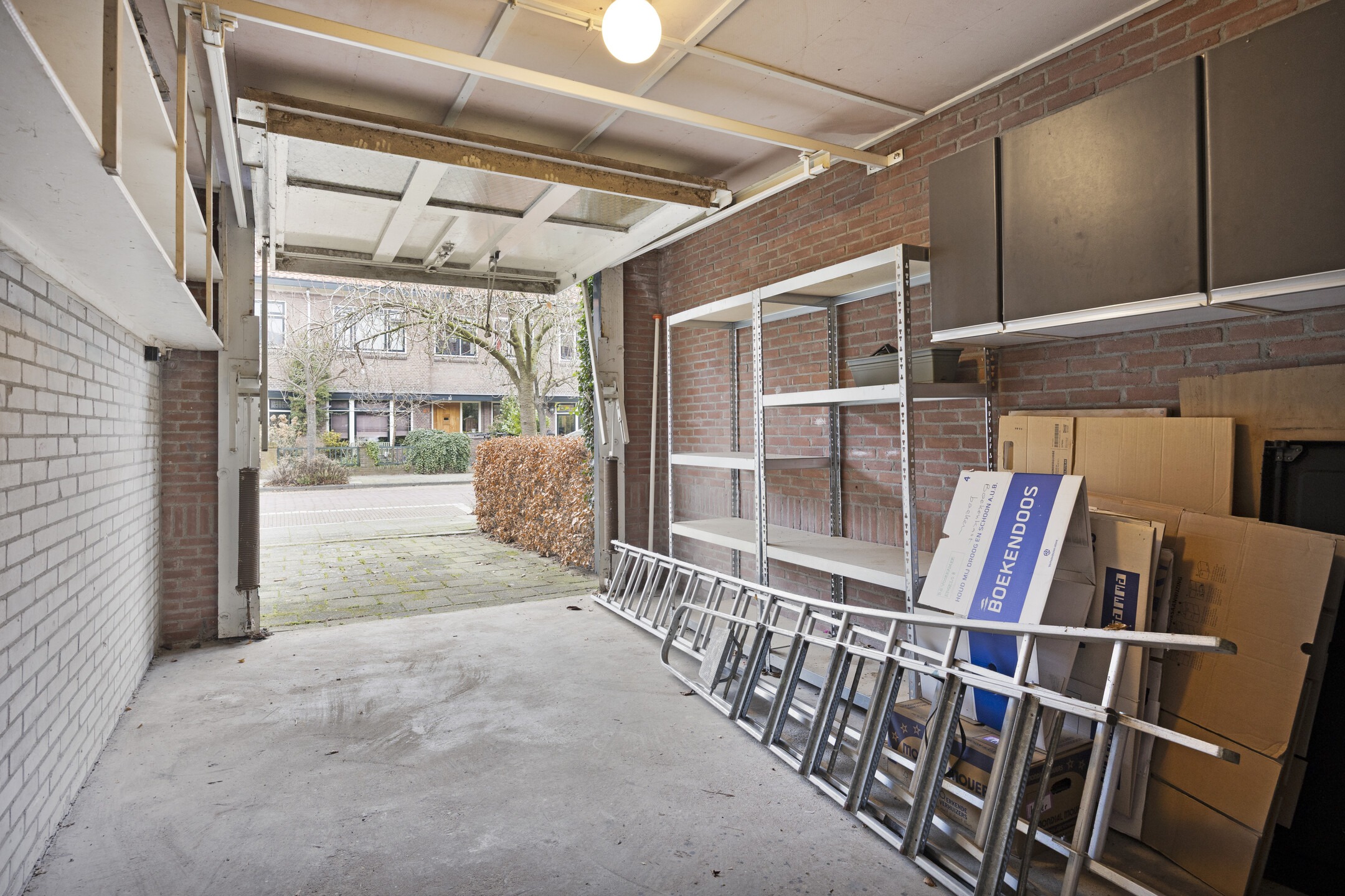 De garage biedt alle ruimte voor een auto en heeft onder de kap nog een zeer ruime zolder. Ideaal voor extra bergruimte, maar ook als speelzolder of bijvoorbeeld een gastenverblijf.