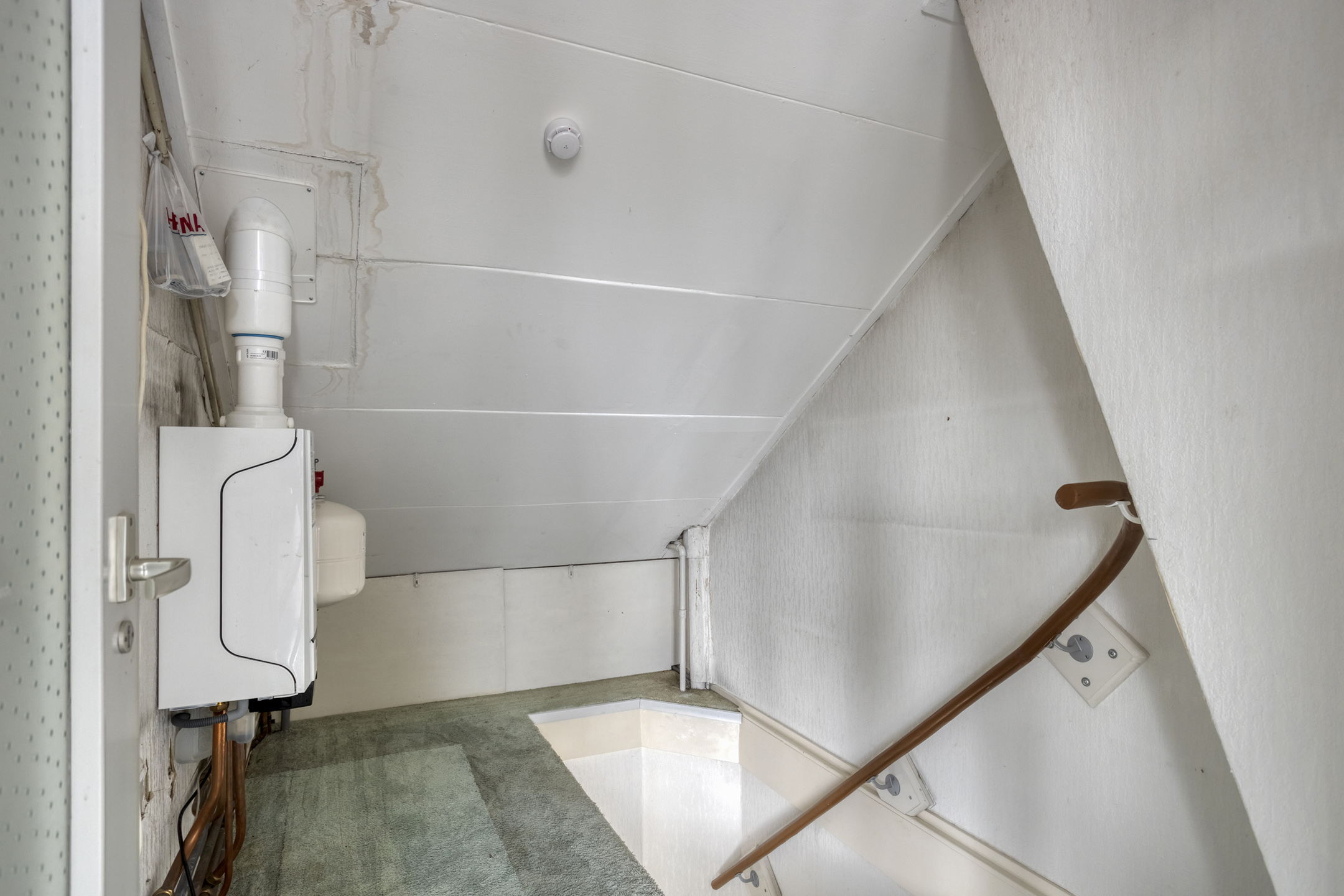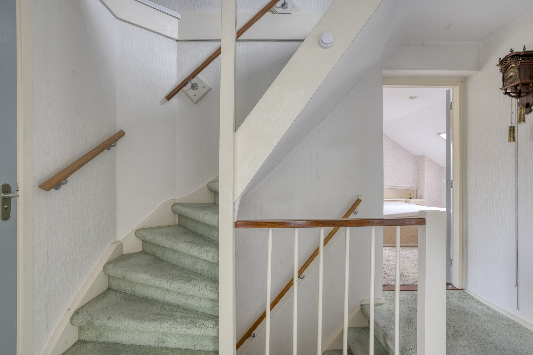 De zolderverdieping biedt een vierde, royale slaapkamer met ingebouwde kastruimte en een aparte berging. Dankzij de afmetingen is dit ook een uitstekende ruimte om als werk- of hobbykamer te gebruiken.