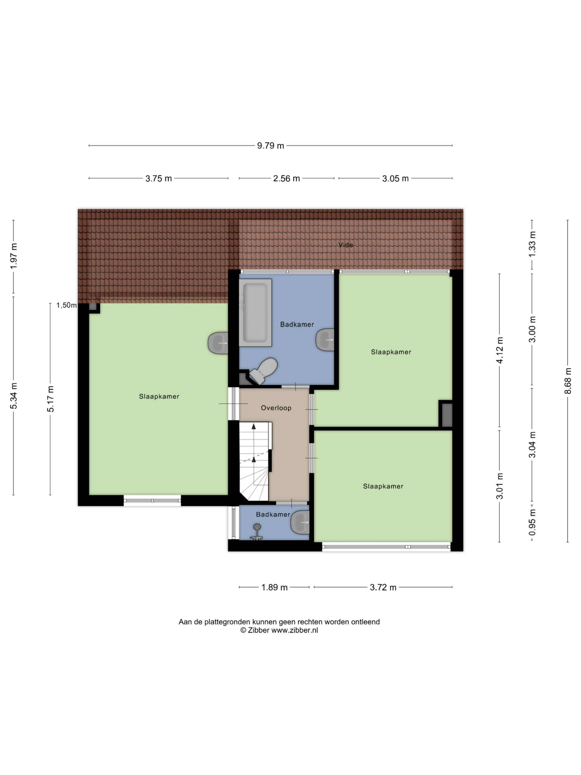 De overloop geeft toegang tot drie ruime slaapkamers en een badkamer met ligbad, toilet en wastafel. Op deze verdieping bevindt zich tevens een tweede, kleinere badkamer met douche en wastafel, handig voor gasten of een groot gezin.