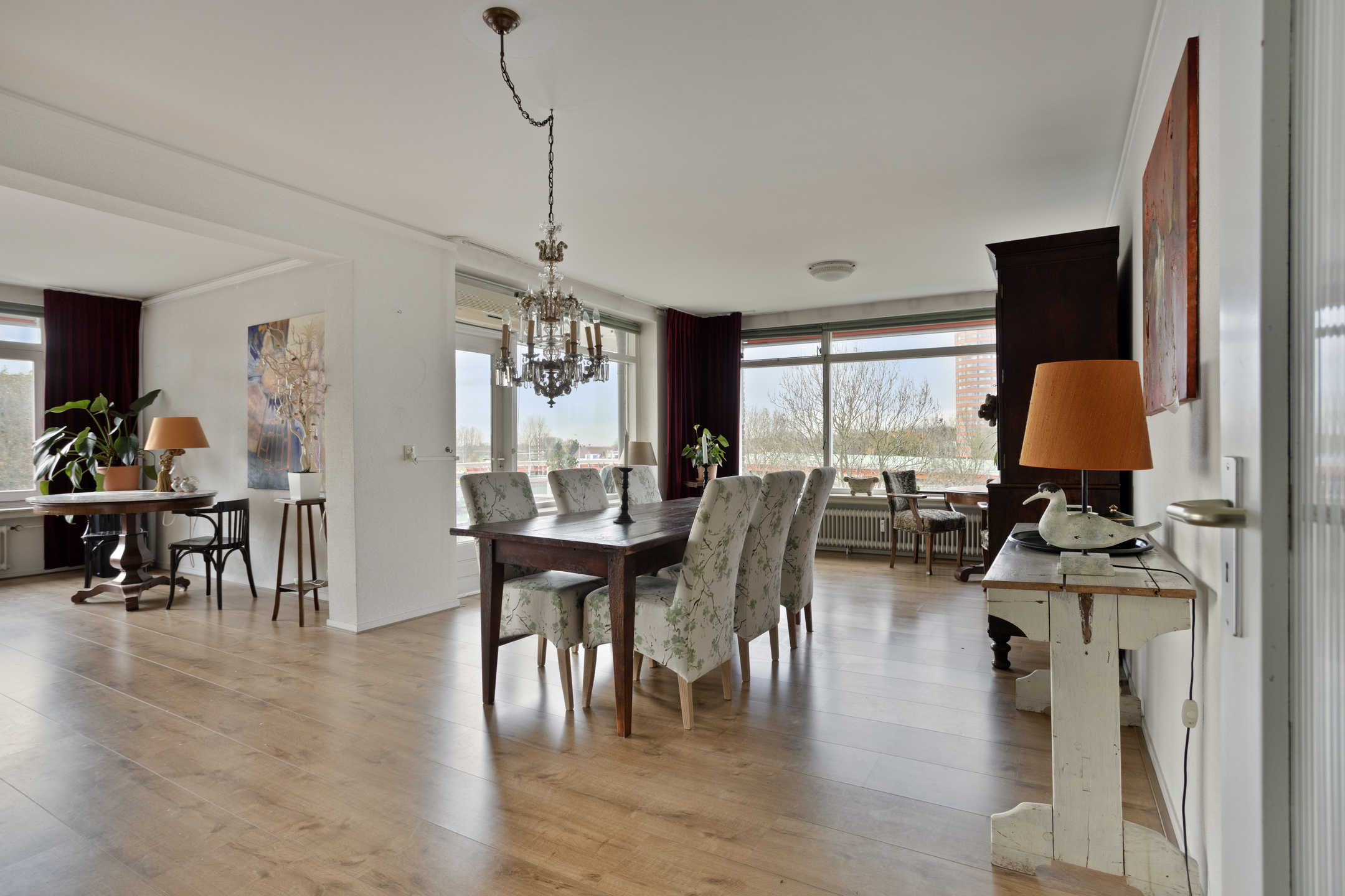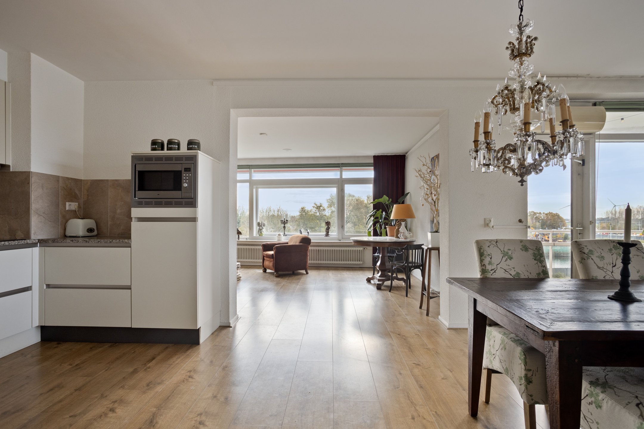 Aan de rand van Leiden met uitzicht over parken en polders ligt dit zeer royale 3-kamerappartement. Alle ruimtes zijn ruim van opzet met grote raampartijen, waardoor je overal ruimte en licht ervaart. Dit wordt nog extra benadrukt door de open zitkamer, eetkamer en keuken én de aanwezigheid van twee ruime balkons. Naast de luxe van twee volwaardige slaapkamers en een onlangs geheel gerenoveerde badkamer, beschikt dit appartement over een eigen parkeergarage met elektrisch bedienbare deur naast een eigen berging. Er is zelfs een huismeester die beschikbaar is voor eventuele (technische) vragen!