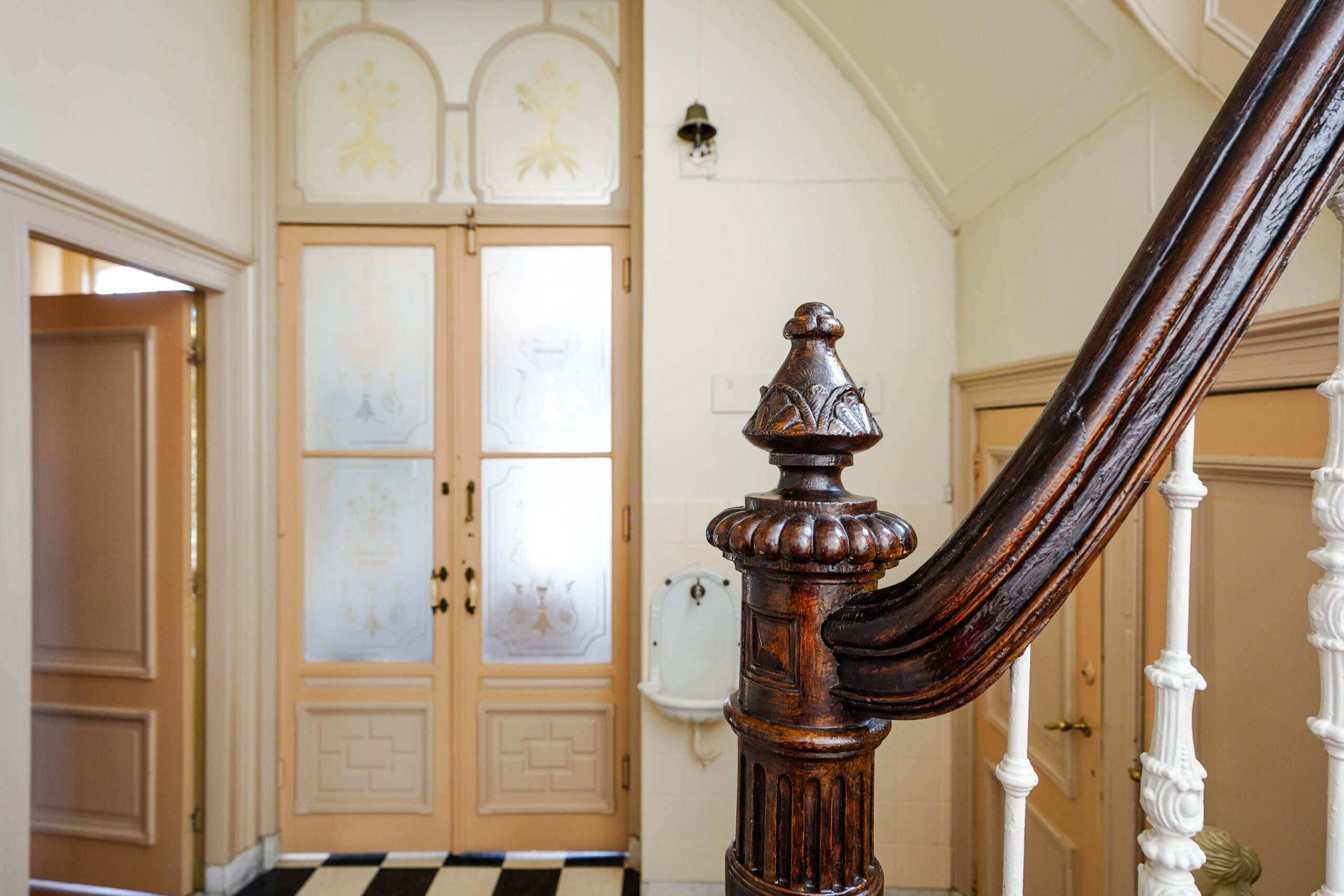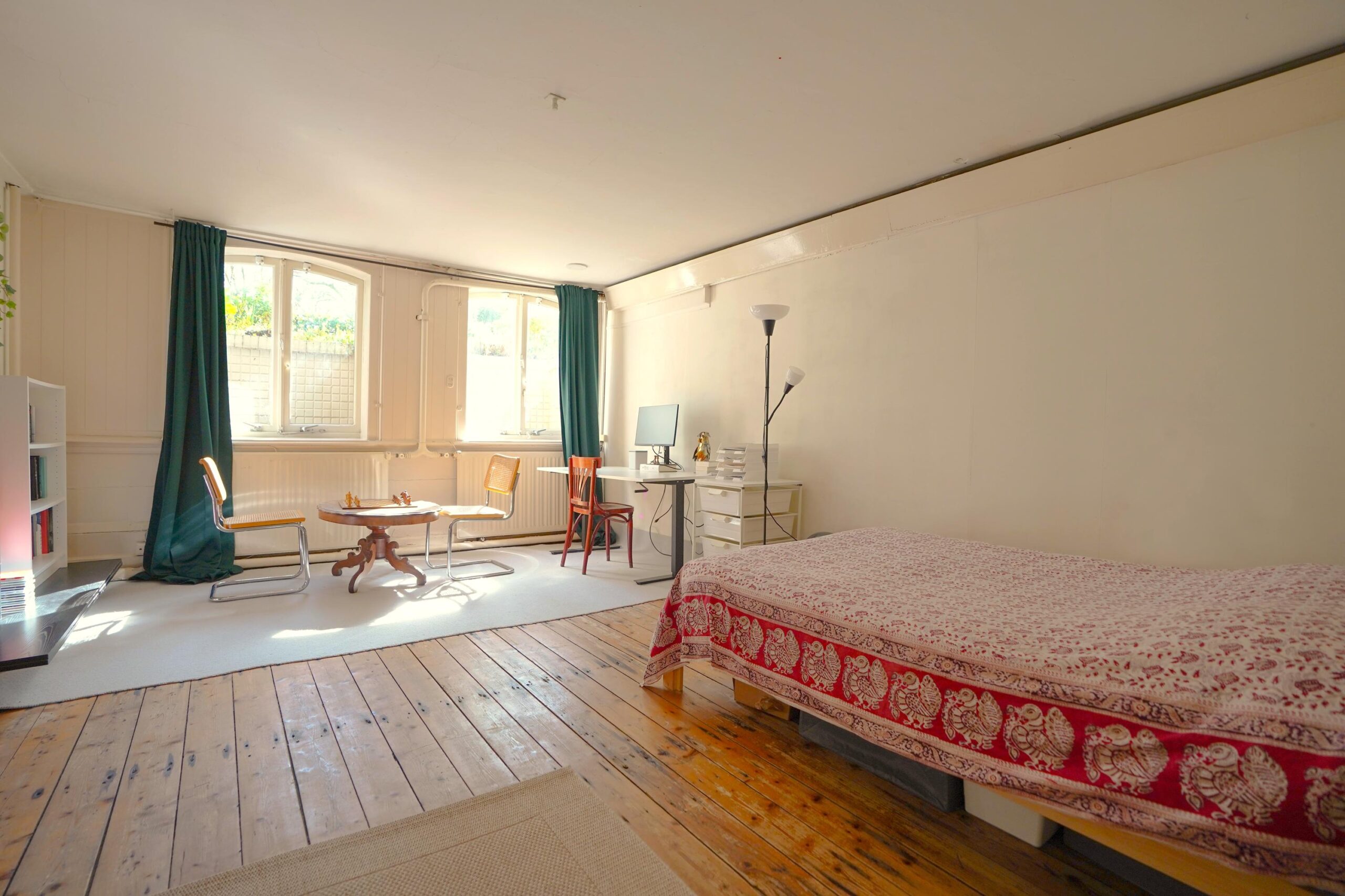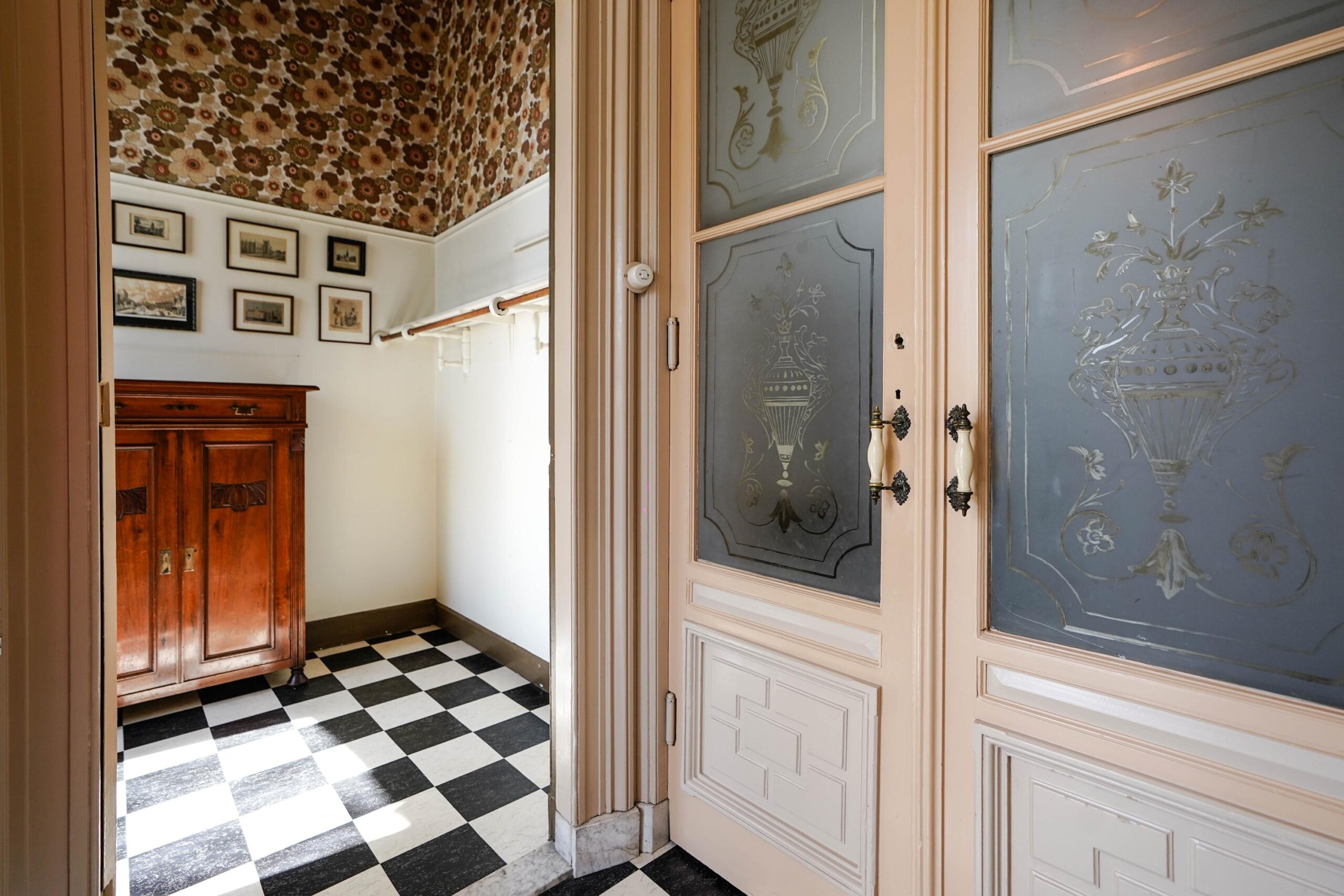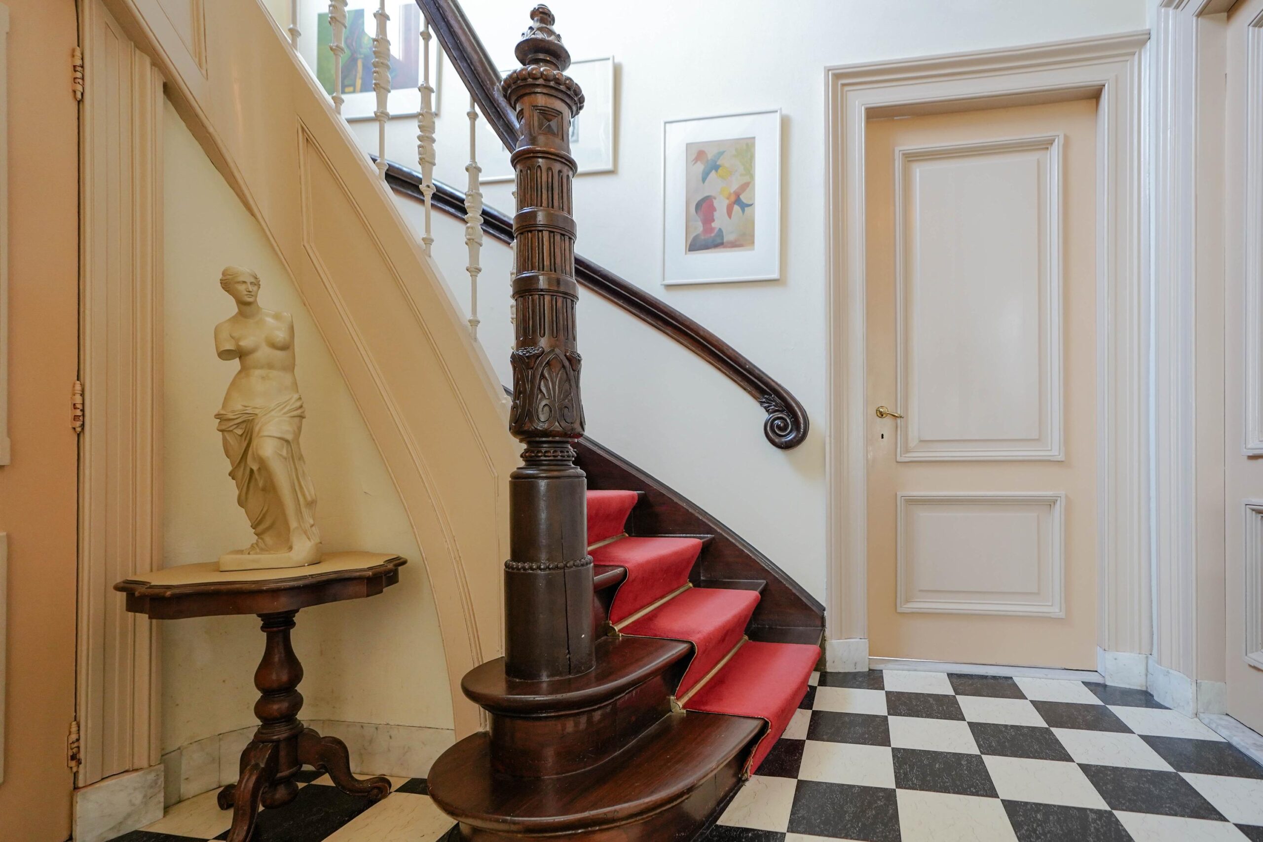 • De bel-etage, toegankelijk via de voortuin en de indrukwekkende entree met bordes. Hier werden de gasten ontvangen en was het de bedoeling dat ze werden geïmponeerd door de marmeren vloer in voorportaal en hal, het imposante trappenhuis en de hoge, rijkversierde plafonds en grote raampartijen in de kamer en suite. Hier vind je ook de ruime woonkeuken.