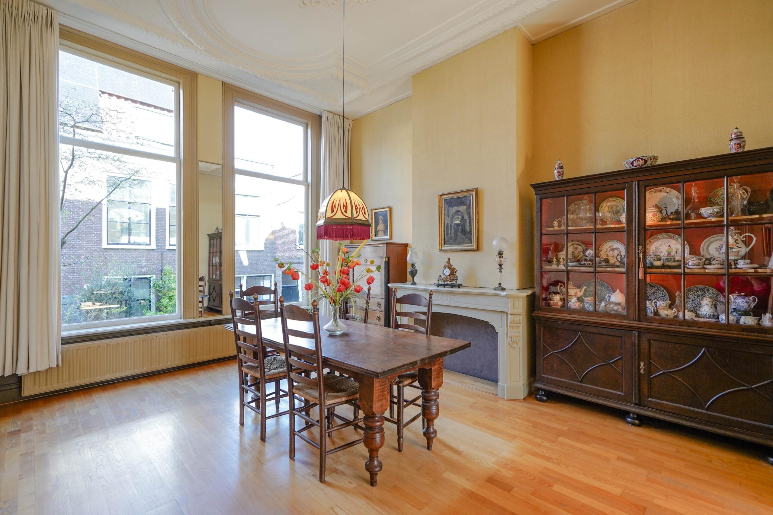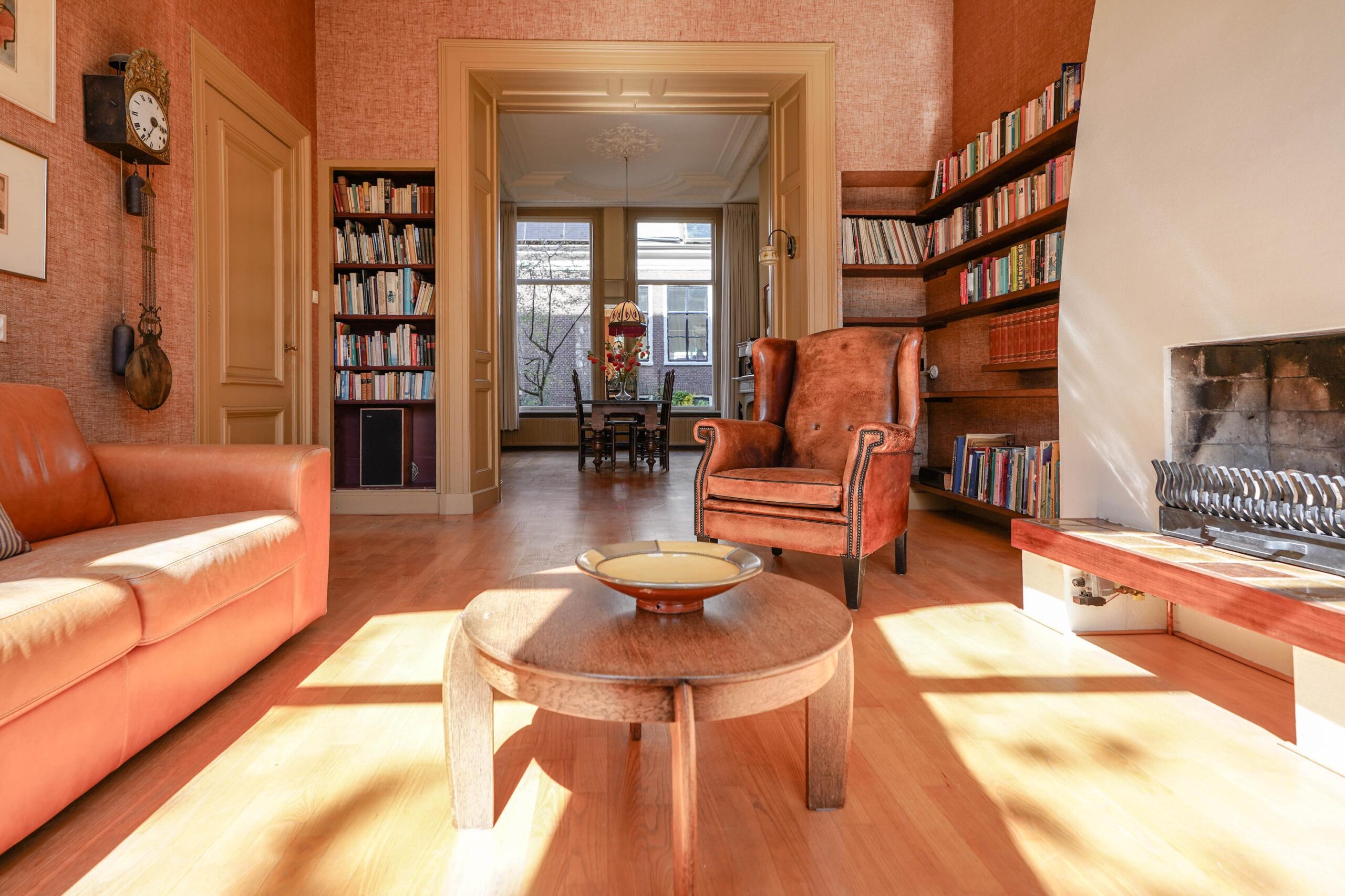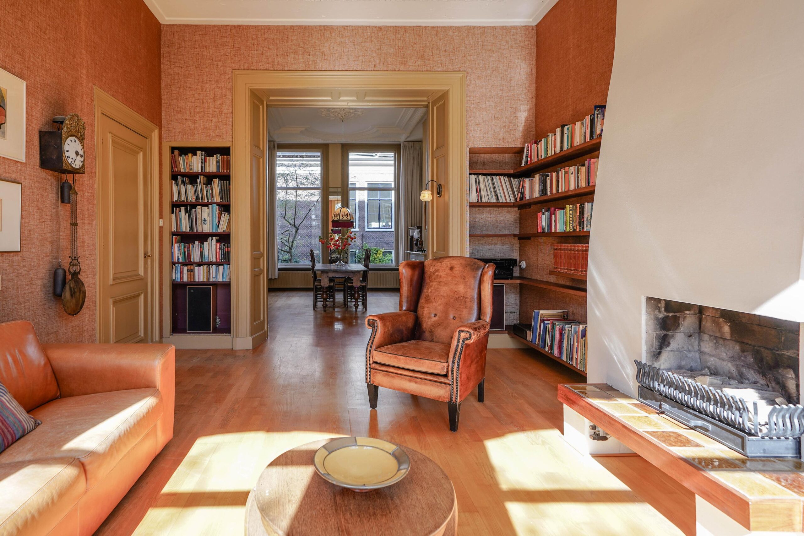 Maar liefst 327 vierkante meter wordt verdeeld over vier woonlagen, waarbij de originele indeling nog goed is terug te zien: