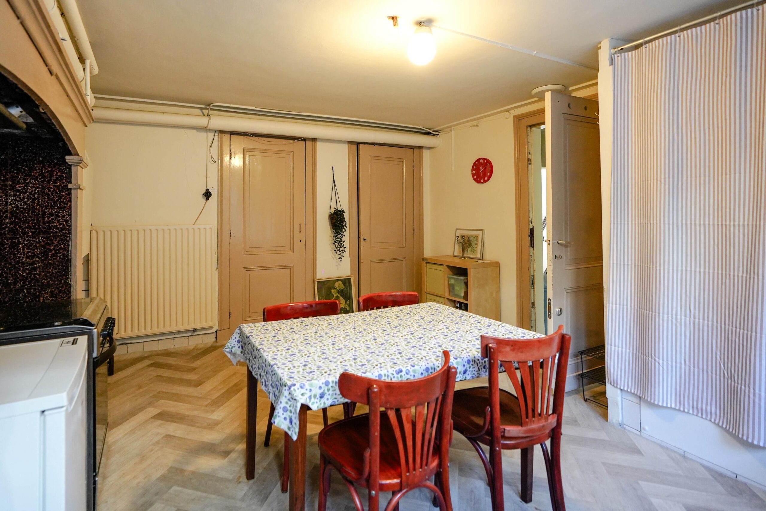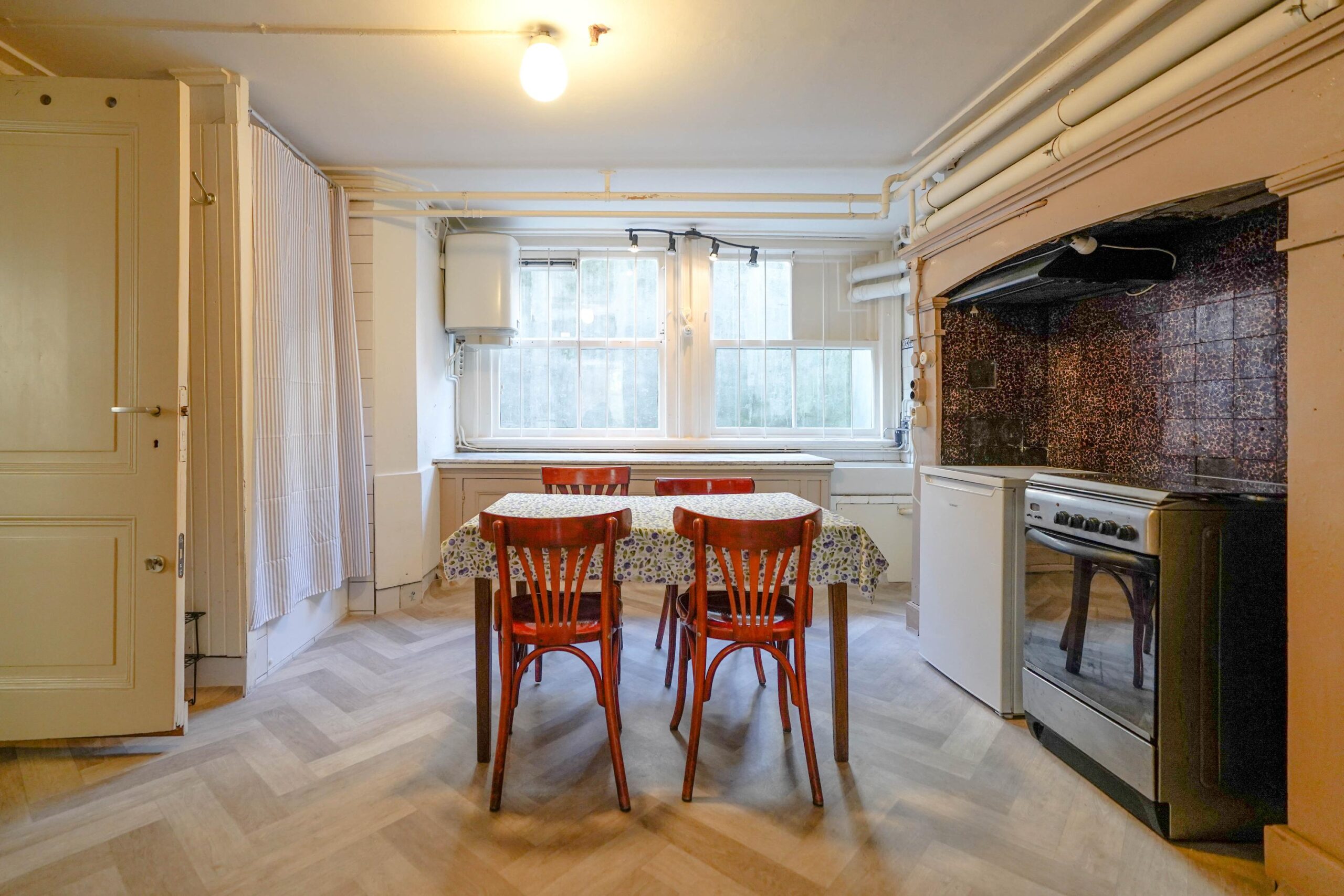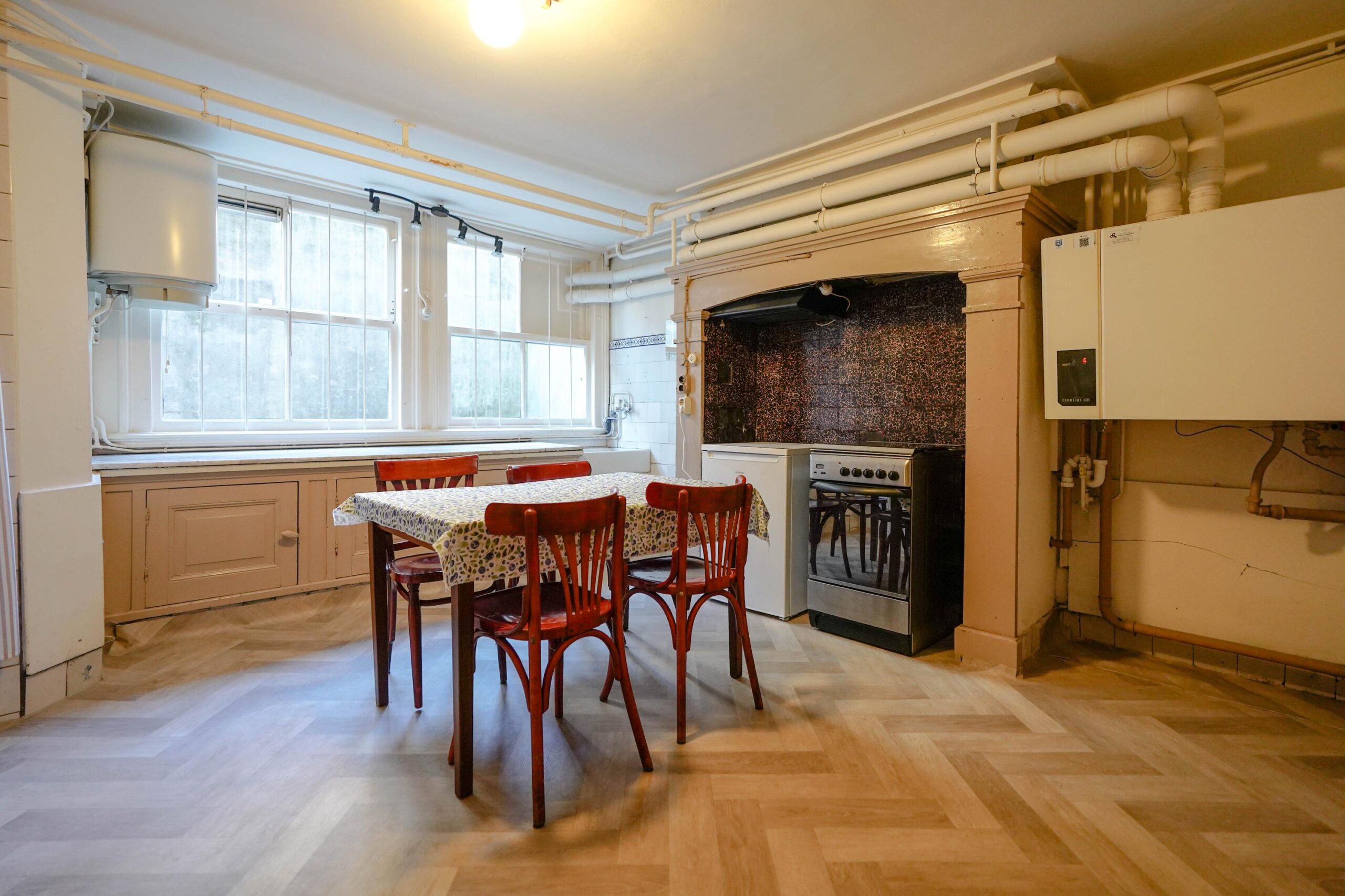 Maar liefst 327 vierkante meter wordt verdeeld over vier woonlagen, waarbij de originele indeling nog goed is terug te zien: