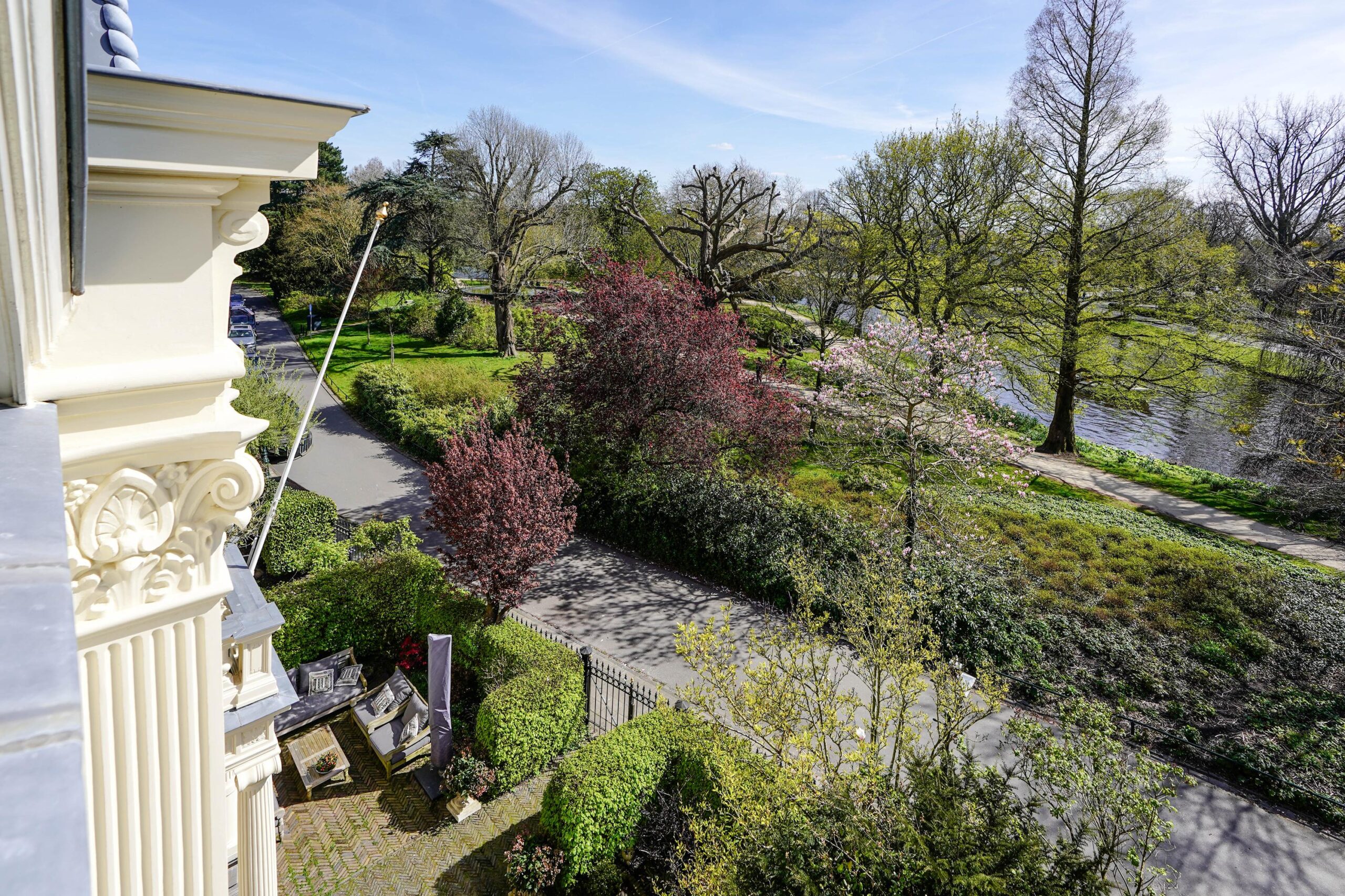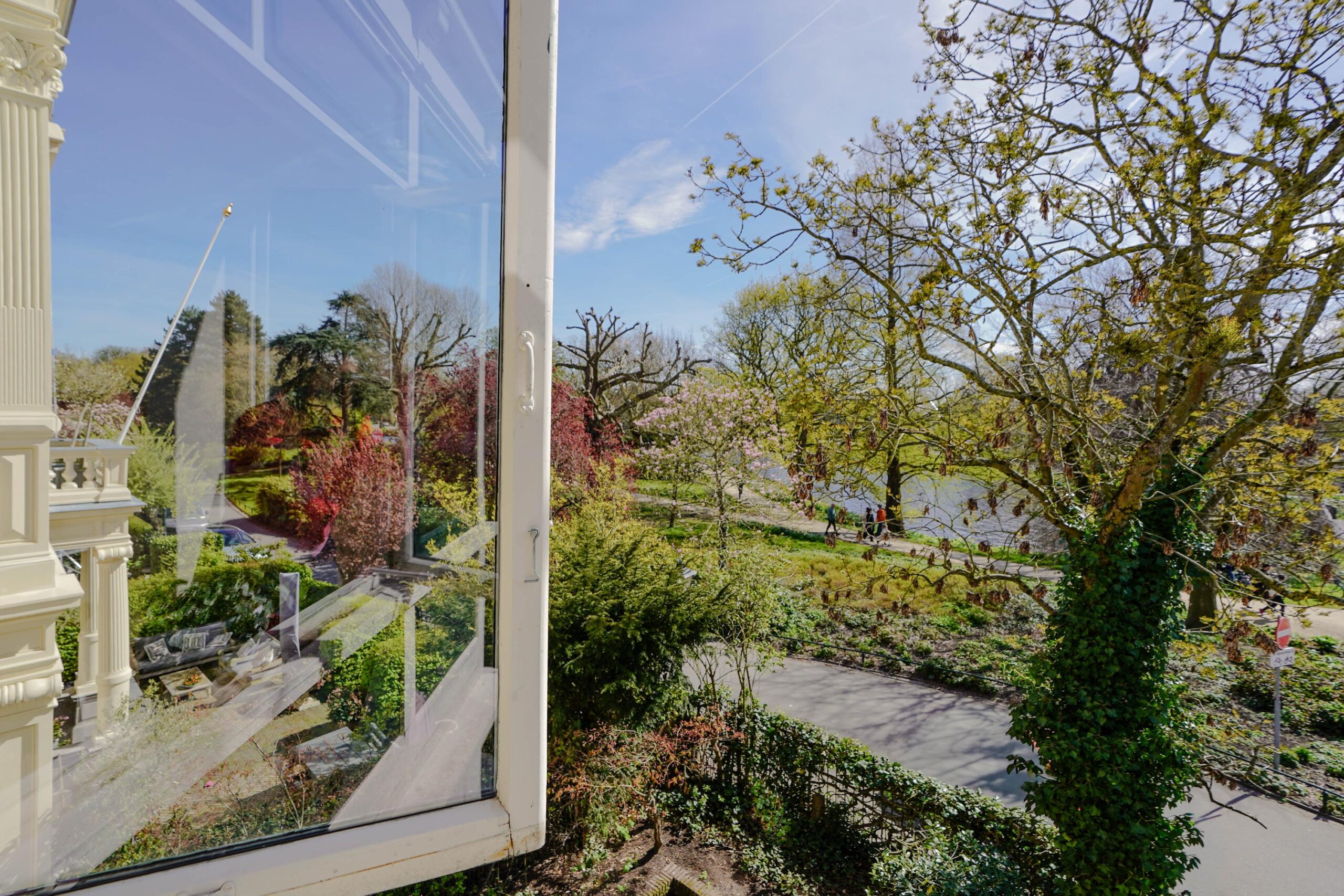 Voorname 19e-eeuwse stadsvilla met ruime tuin en uitzicht over park en singels.