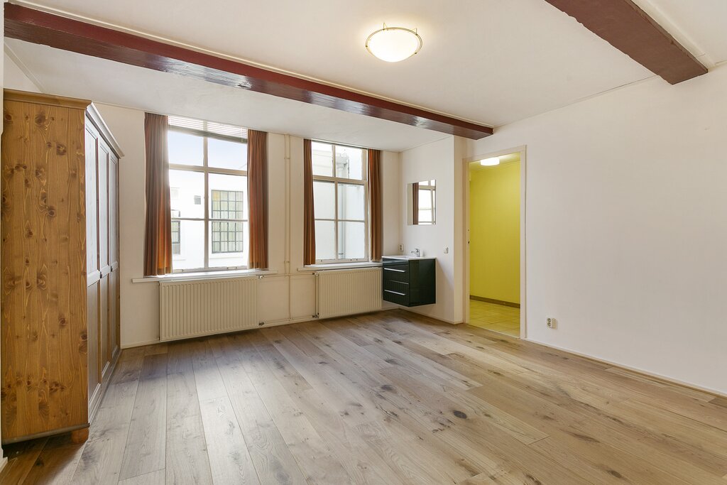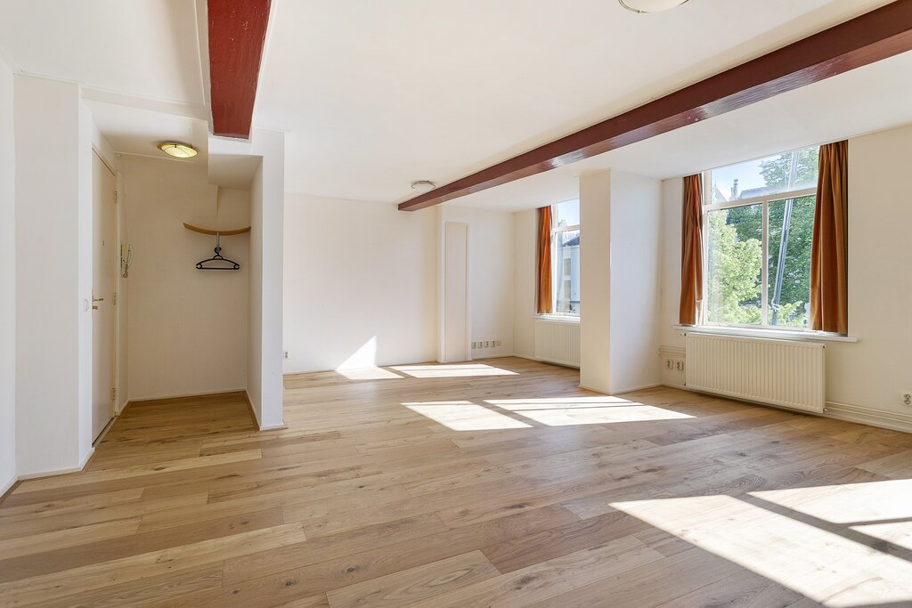 Het appartement bevindt zich op de eerste etage en heeft een prettige indeling met veel lichtinval. Aan de voorzijde geven de ramen met roedeverdeling uitzicht op de gracht. De vloer is afgewerkt met een eiken lamelparket, wat zorgt voor een warme en verzorgde uitstraling.