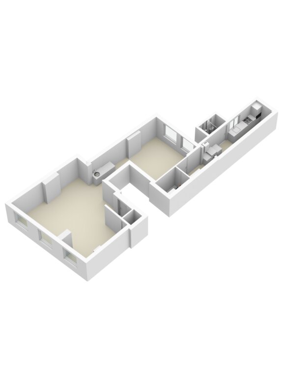 Entree op nummer 81, gezamenlijk trappenhuis naar het appartement op de eerste verdieping. De woonkamer is opvallend breed en daardoor praktisch in te delen met een zitgedeelte, eethoek en eventueel een werkplek. Vanuit de woonkamer loopt u via een extra kitchenette door naar de slaapkamer aan de achterzijde. Aan de achterzijde van de woning treft u de ruime keuken, badkamer met douche en toilet, en bergkast.