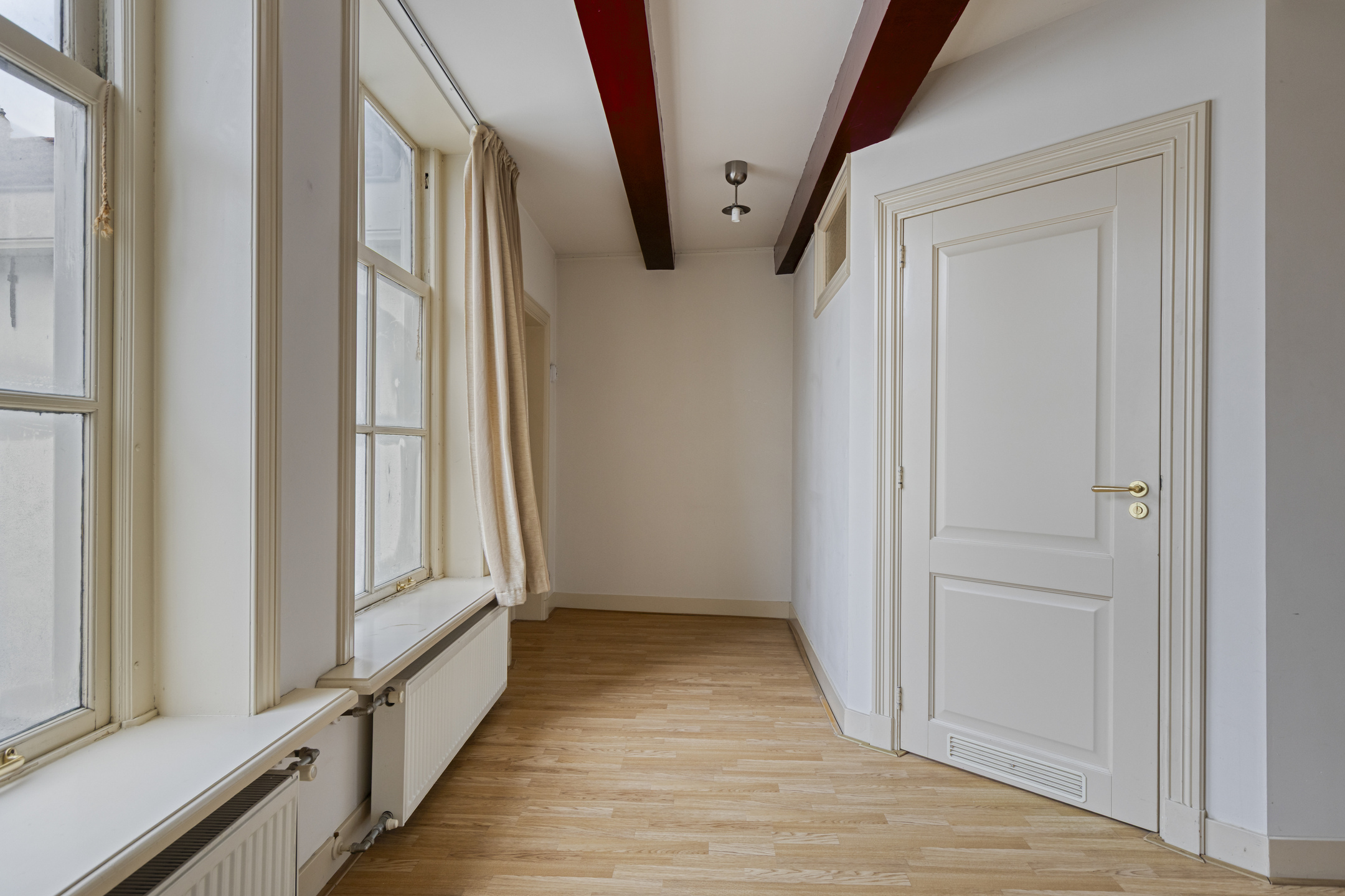 Dit appartement ligt in hartje centrum van Leiden en heeft veel ruimte en karakter: hoge plafonds, ramen met roedeverdeling en een bijzondere indeling met in het achterhuis een zeer sfeervolle slaapkamer met balkenplafond. Ook de locatie is fantastisch. Vanuit de woonkamer heb je een prachtig uitzicht op het Rapenburg, midden in het historische stadscentrum van Leiden.