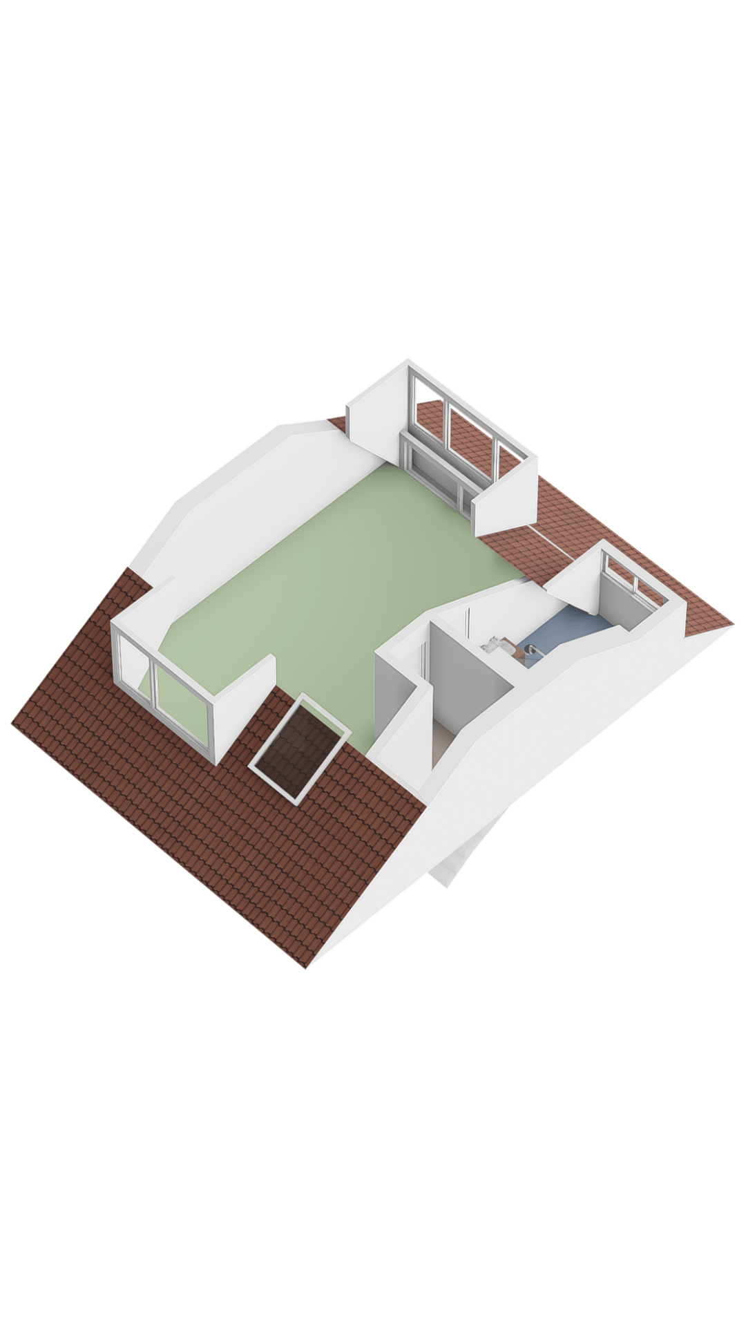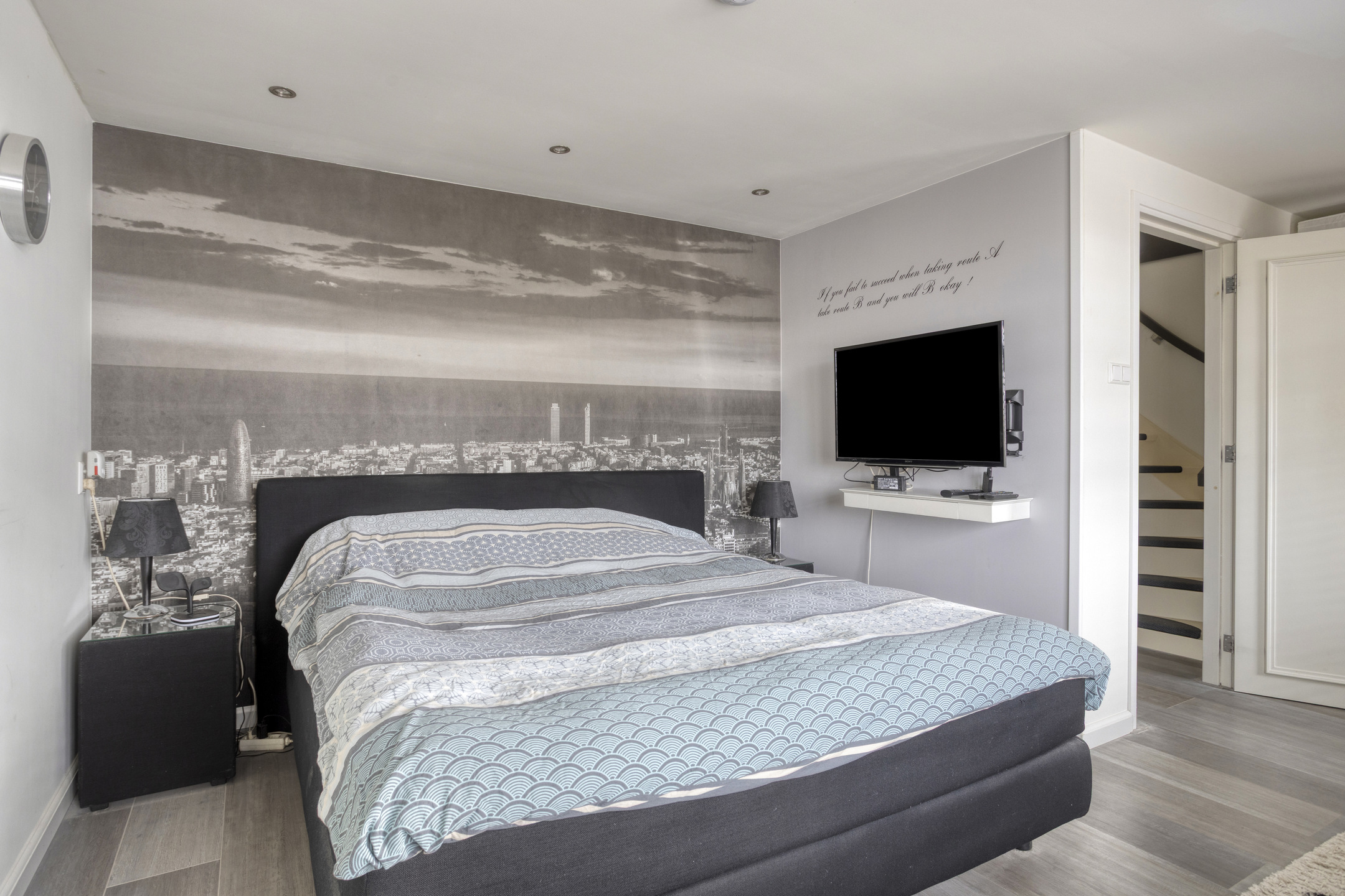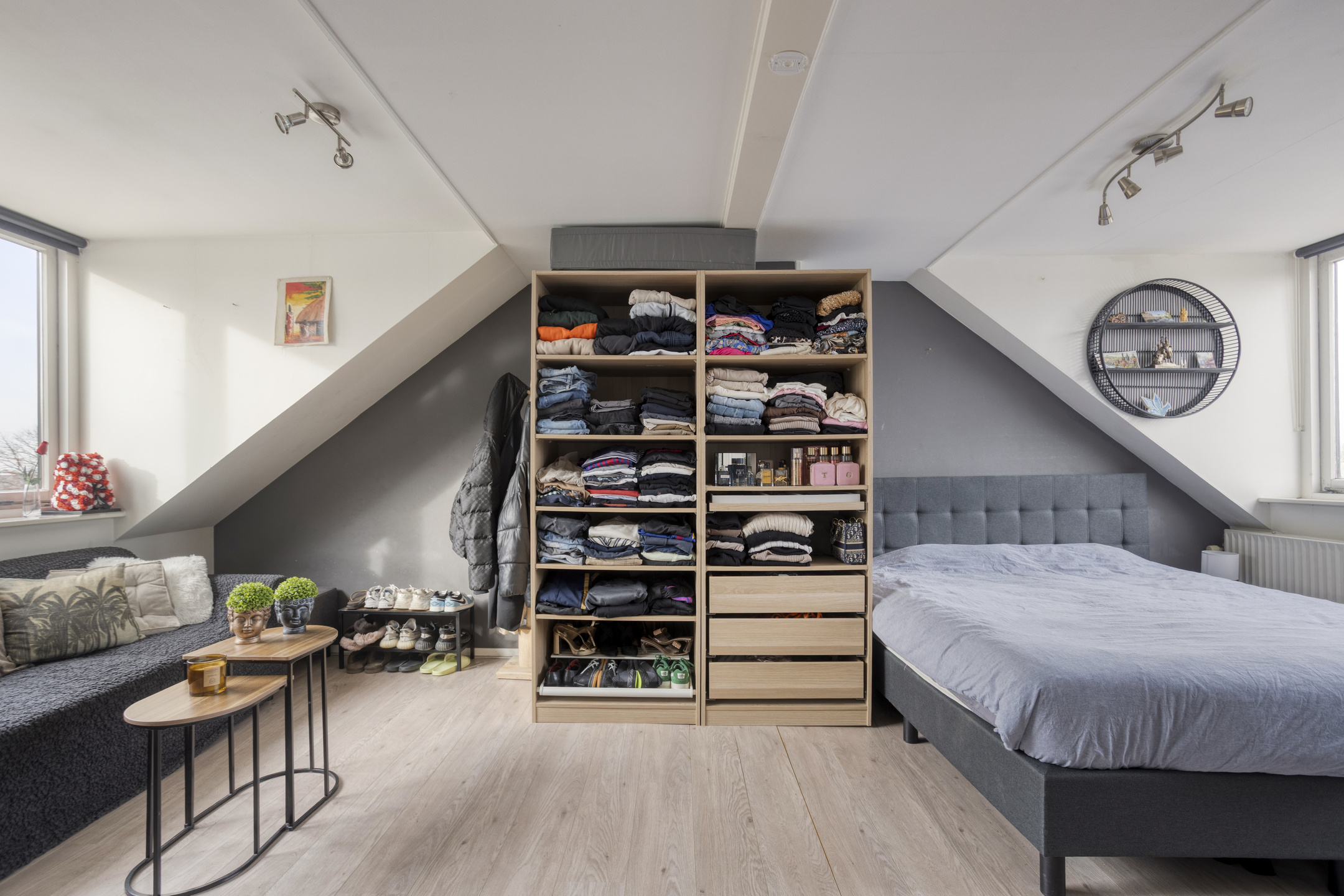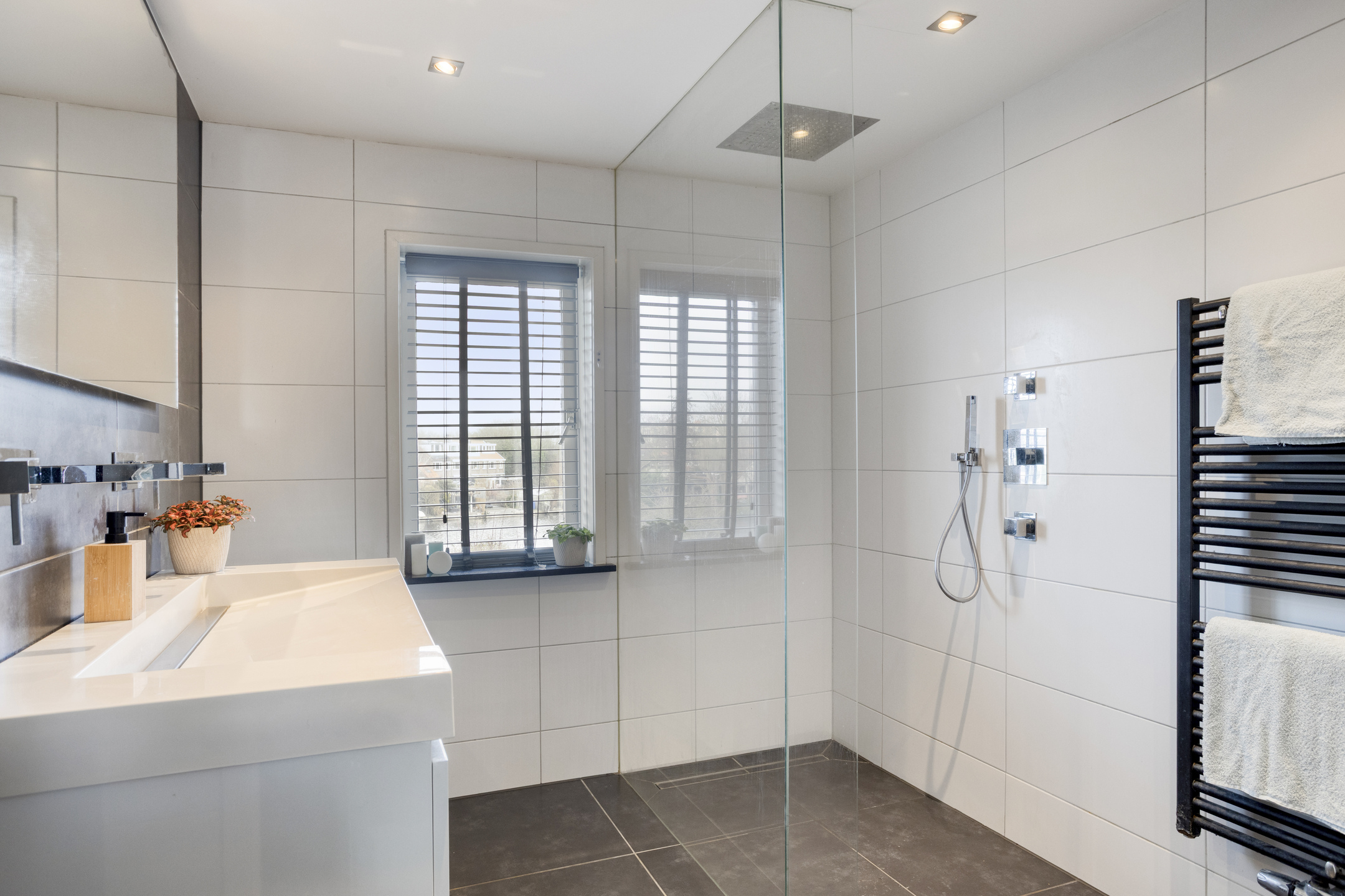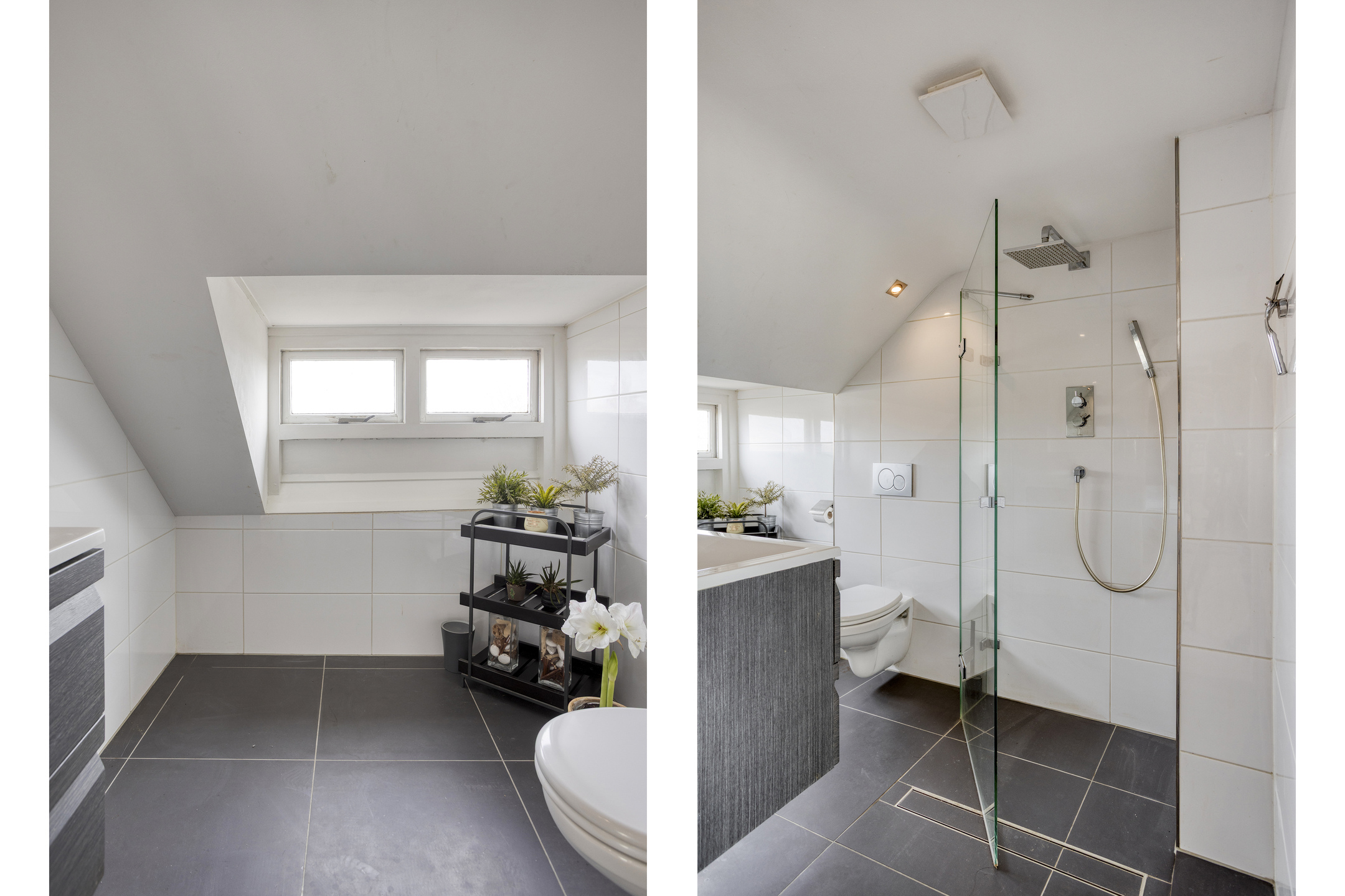 Op de tweede etage bevindt zich nog een ruime derde slaapkamer met eigen badkamer met douche en wc en in de knieschotten nog extra bergruimte. Ook deze kamer is voorzien van airco, zodat het heerlijk koel blijft in de zomer.