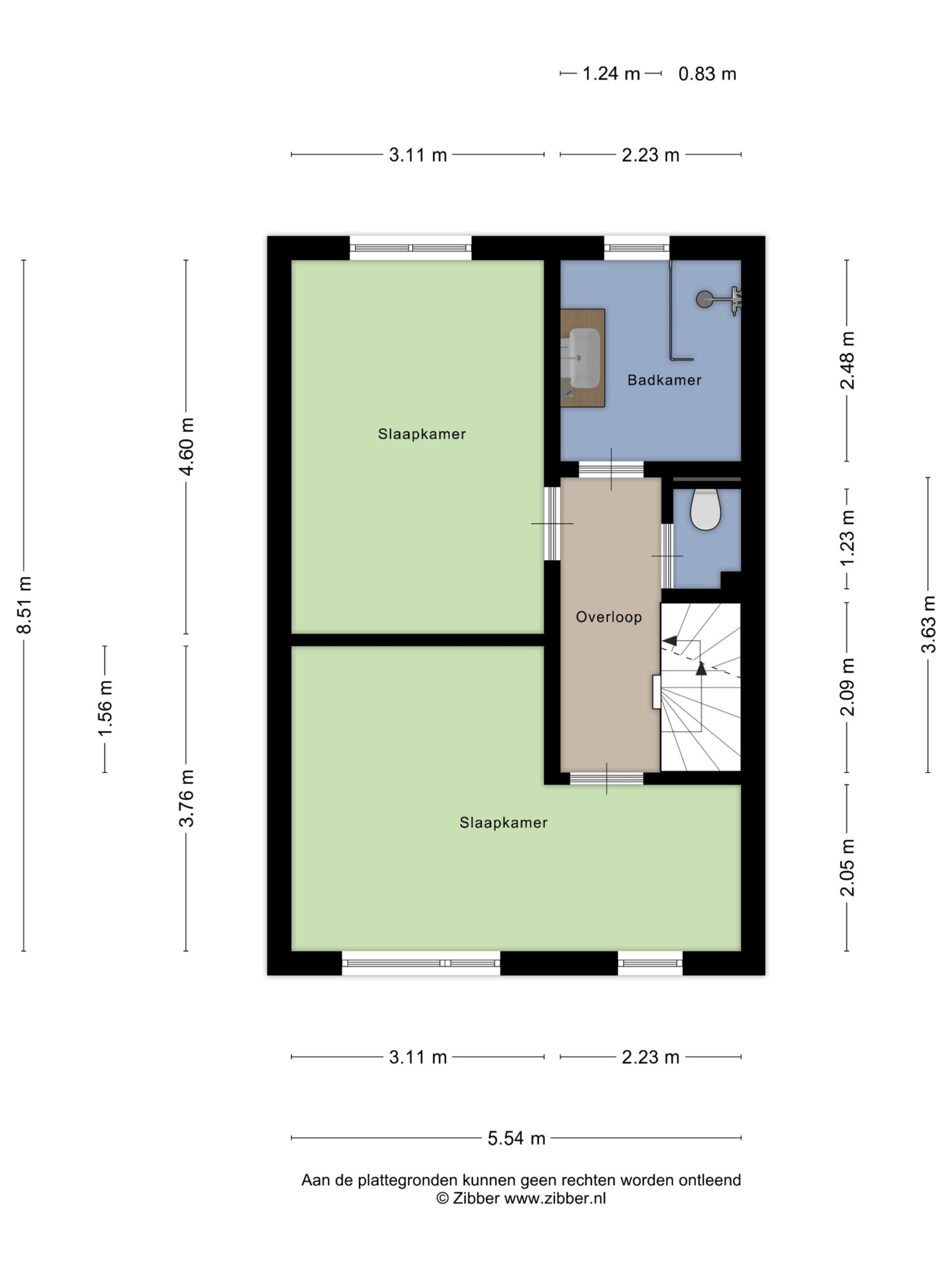 De eerste etage beschikt over twee royale slaapkamers en een badkamer met op de overloop een aparte wc. Beide slaapkamers zijn voorzien van airco.