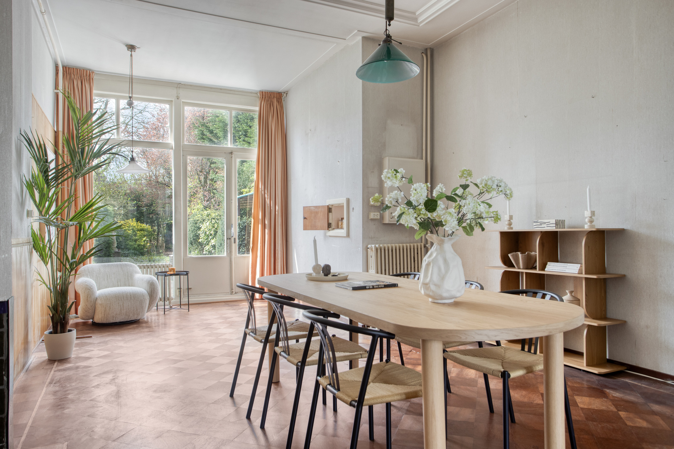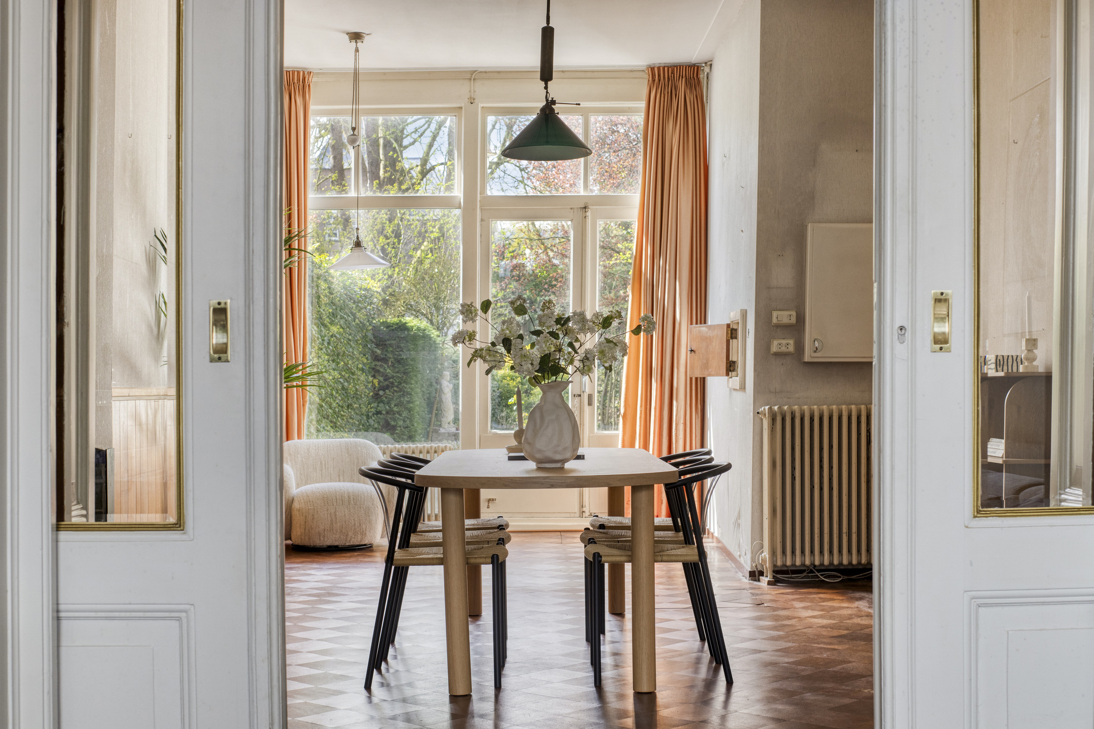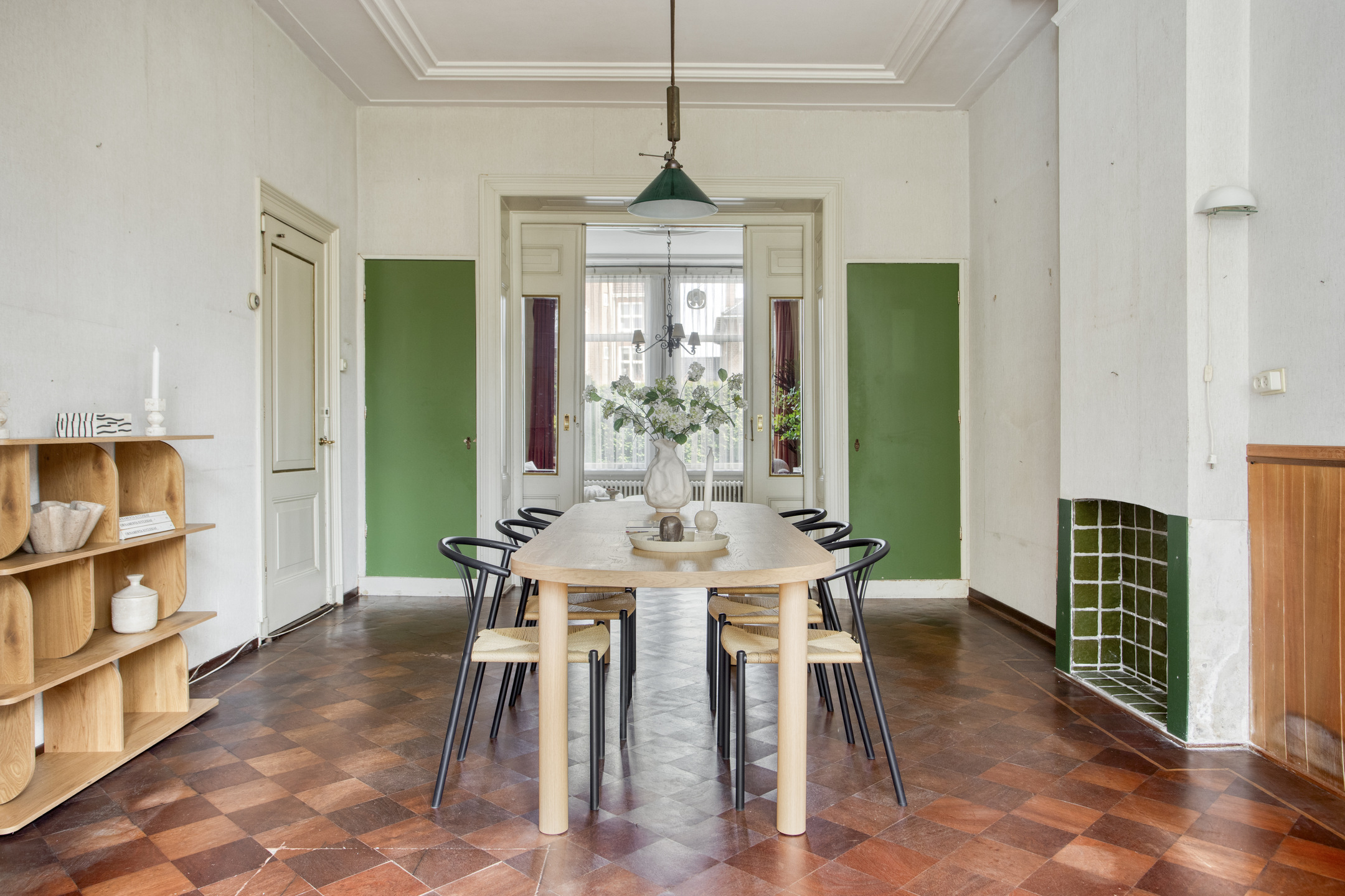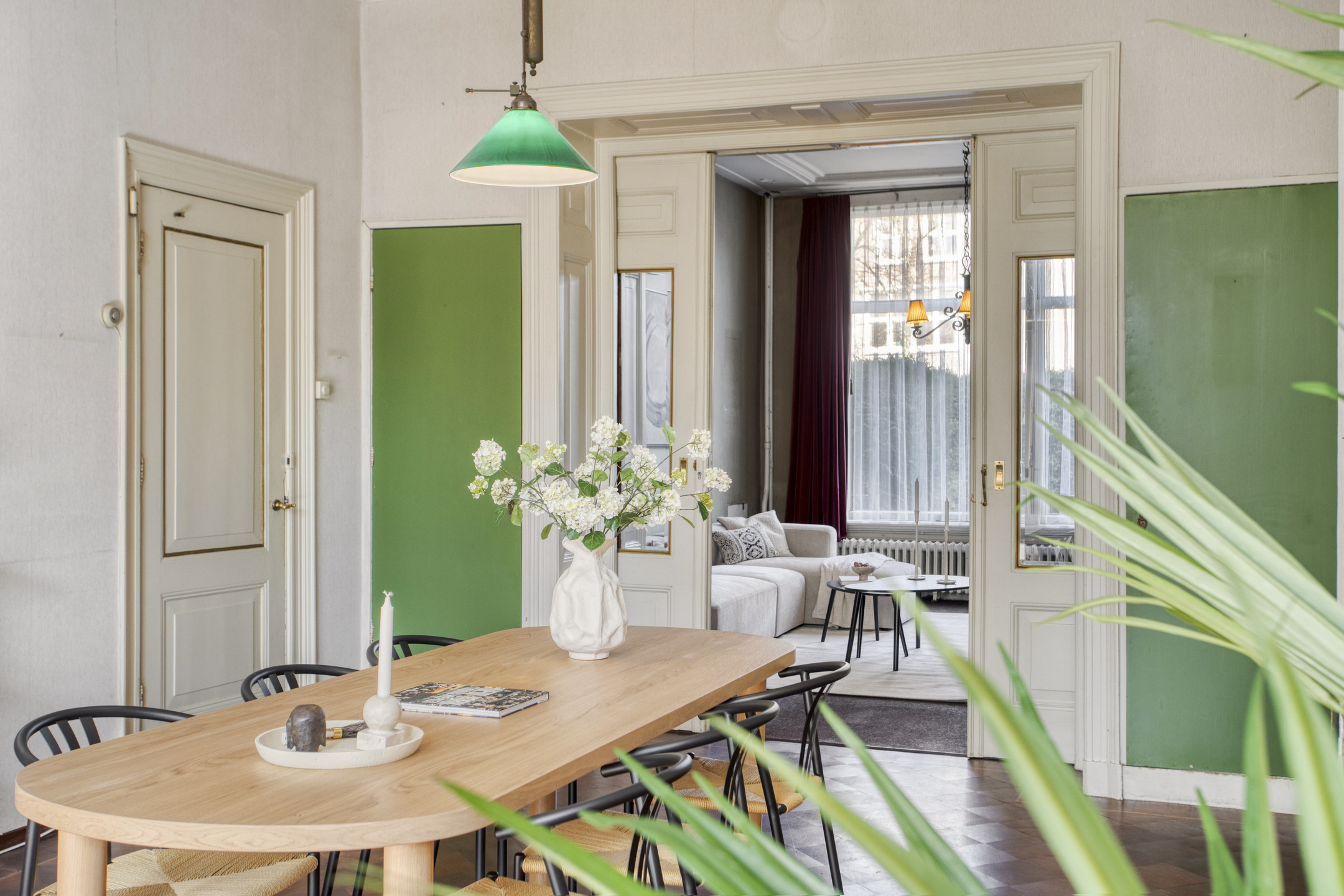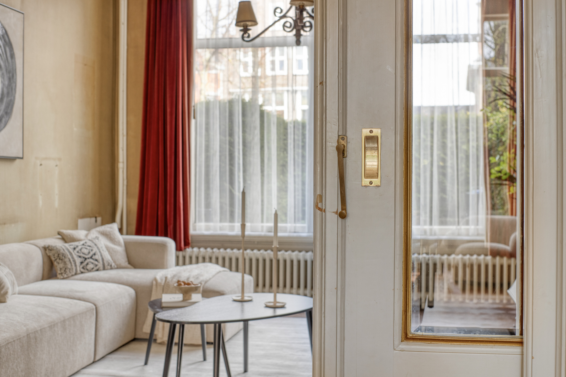 Zodra je binnenkomt en de deur achter je dicht trekt laat je de hectiek van de stad achter je. Hier heerst rust en kalmte. De brede marmeren hal met hoog plafond en voornaam trappenhuis is heerlijk koel op de warme zomerdagen en zorgt ervoor dat het een verademing is om weer thuis te komen. De woonkamer is klassiek te noemen met de sierstuc plafonds. Door de diepe voortuin met hoge heg ben je afgesloten van je omgeving en gaat het stadse leven geheel aan je voorbij. De ensuite deuren tussen de woonkamer en eetkamer zijn nog in de oorspronkelijke stijl aanwezig; hiermee kan een intieme sfeer worden gecreëerd in elk van de twee kamers. Deuren dicht en zonder afleiding genieten van een heerlijk diner. De eetkamer is verbonden met de serre waar je een zithoek kan creëren met zicht en openslaande deuren naar de tuin. Op de 1e en 2e etage bevinden zich meerdere slaapkamers, waardoor een groot gezin wonen en eventueel ook thuiswerken goed met elkaar kan combineren.