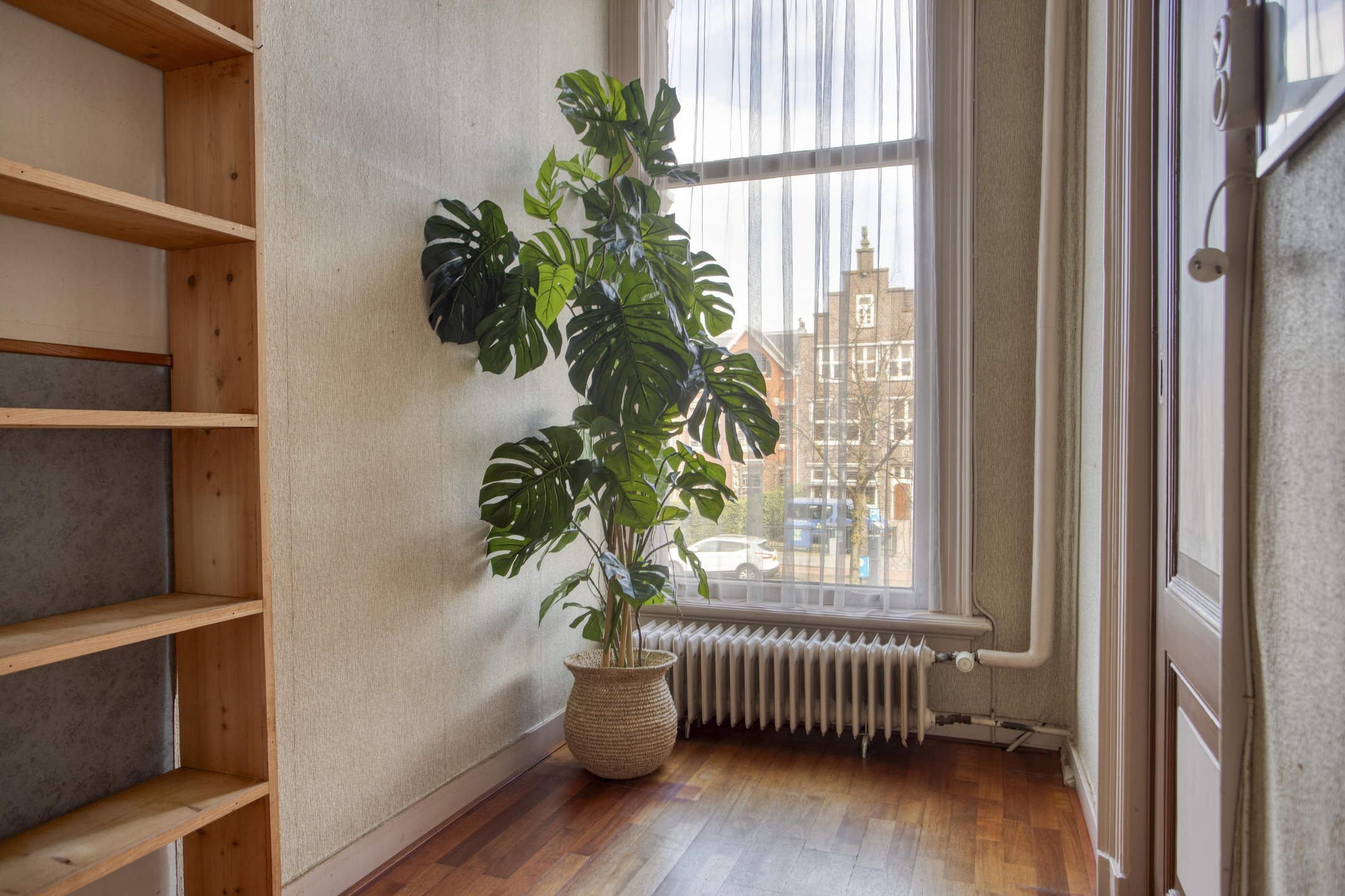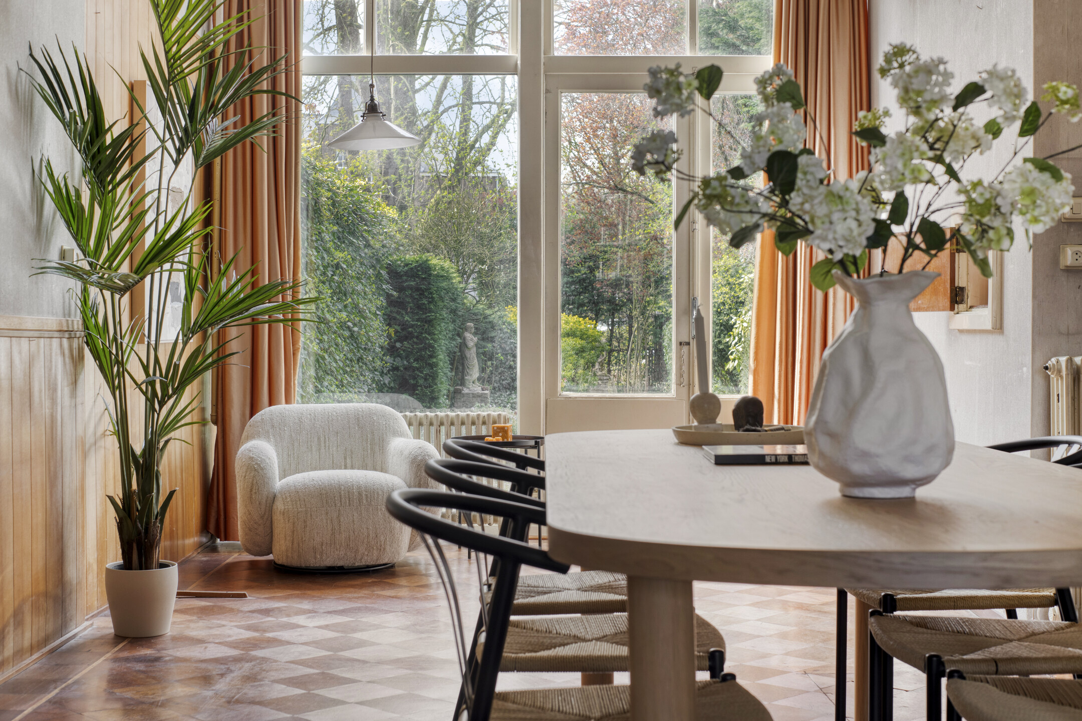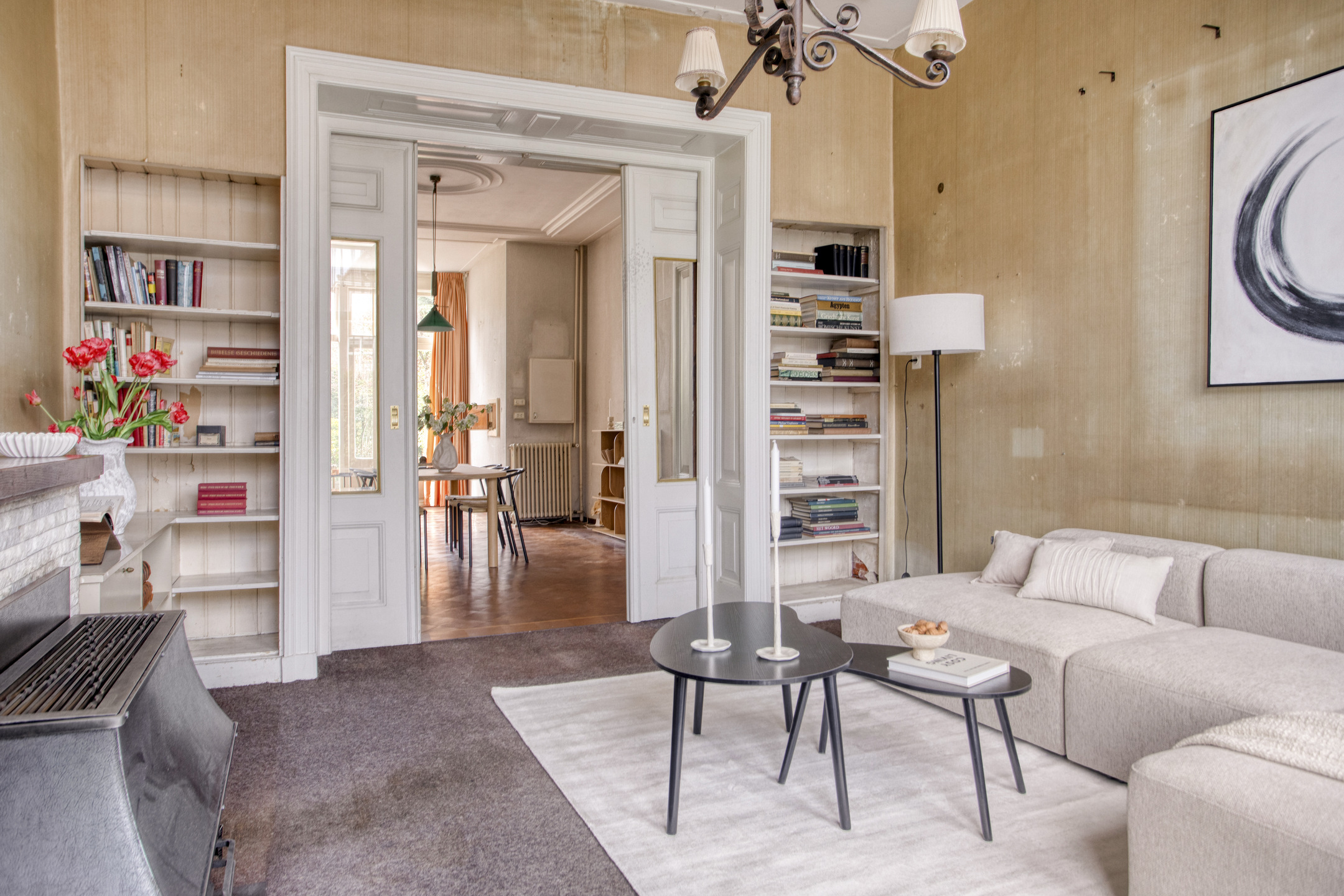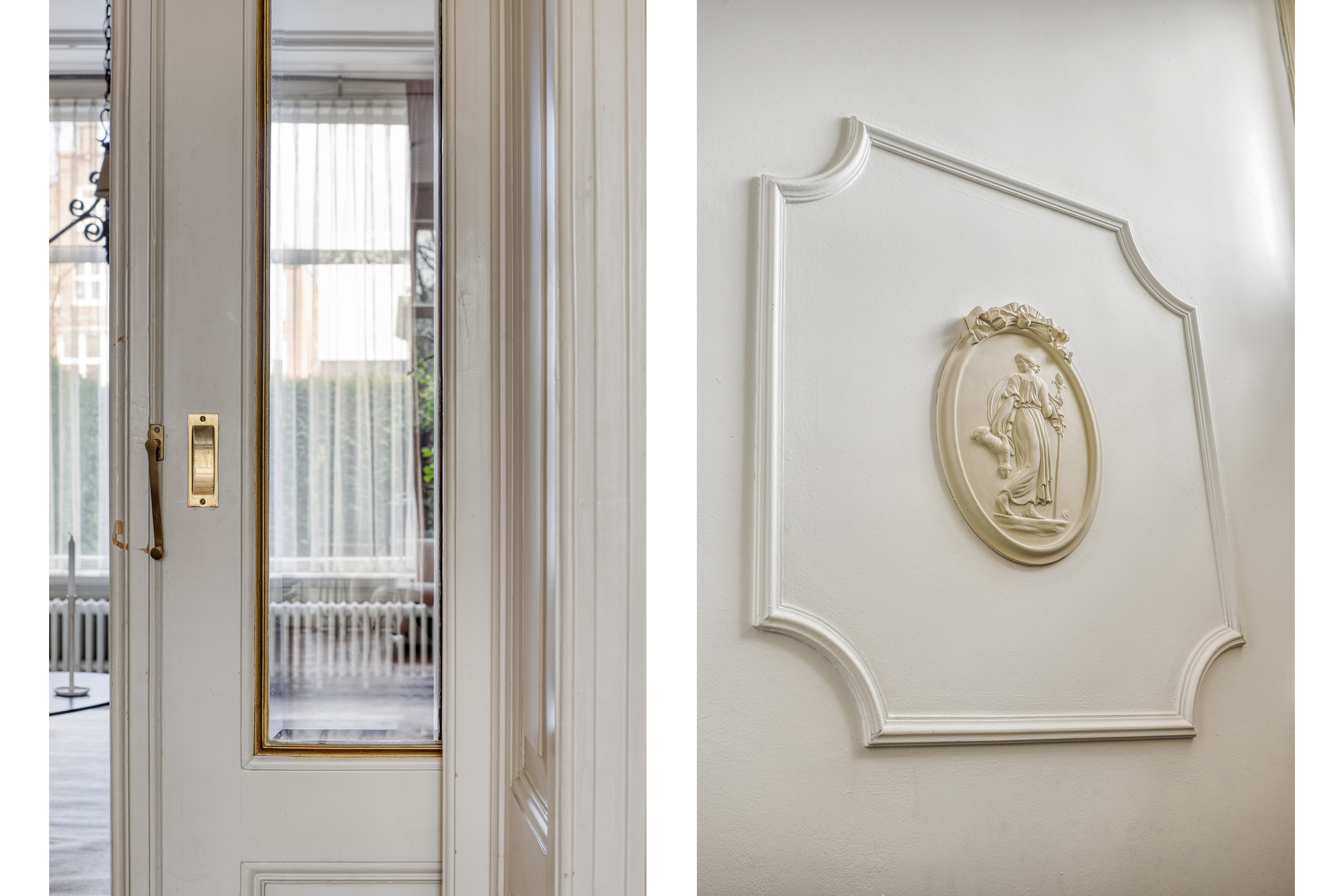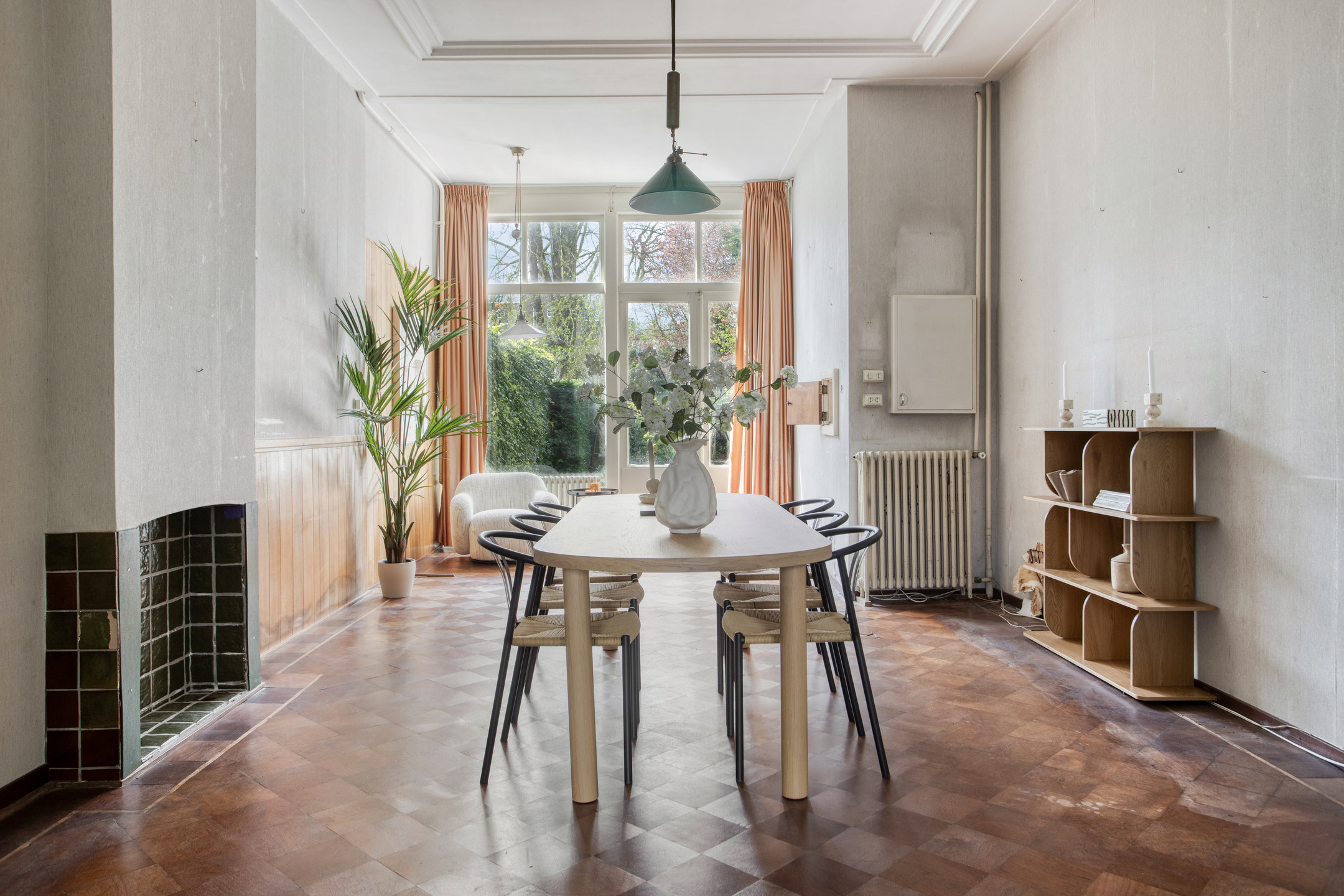Zodra je binnenkomt en de deur achter je dicht trekt laat je de hectiek van de stad achter je. Hier heerst rust en kalmte. De brede marmeren hal met hoog plafond en voornaam trappenhuis is heerlijk koel op de warme zomerdagen en zorgt ervoor dat het een verademing is om weer thuis te komen. De woonkamer is klassiek te noemen met de sierstuc plafonds. Door de diepe voortuin met hoge heg ben je afgesloten van je omgeving en gaat het stadse leven geheel aan je voorbij. De ensuite deuren tussen de woonkamer en eetkamer zijn nog in de oorspronkelijke stijl aanwezig; hiermee kan een intieme sfeer worden gecreëerd in elk van de twee kamers. Deuren dicht en zonder afleiding genieten van een heerlijk diner. De eetkamer is verbonden met de serre waar je een zithoek kan creëren met zicht en openslaande deuren naar de tuin. Op de 1e en 2e etage bevinden zich meerdere slaapkamers, waardoor een groot gezin wonen en eventueel ook thuiswerken goed met elkaar kan combineren.