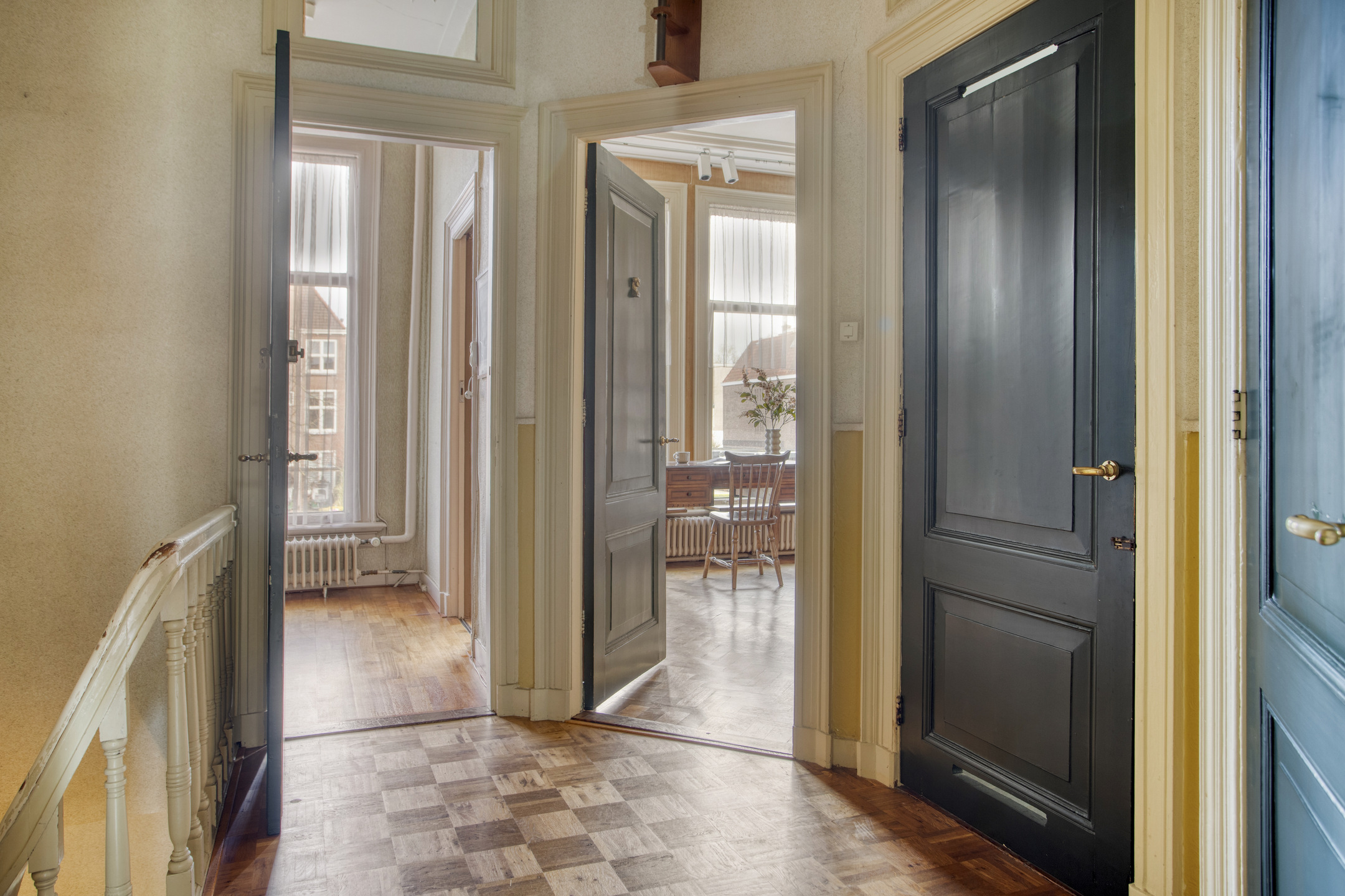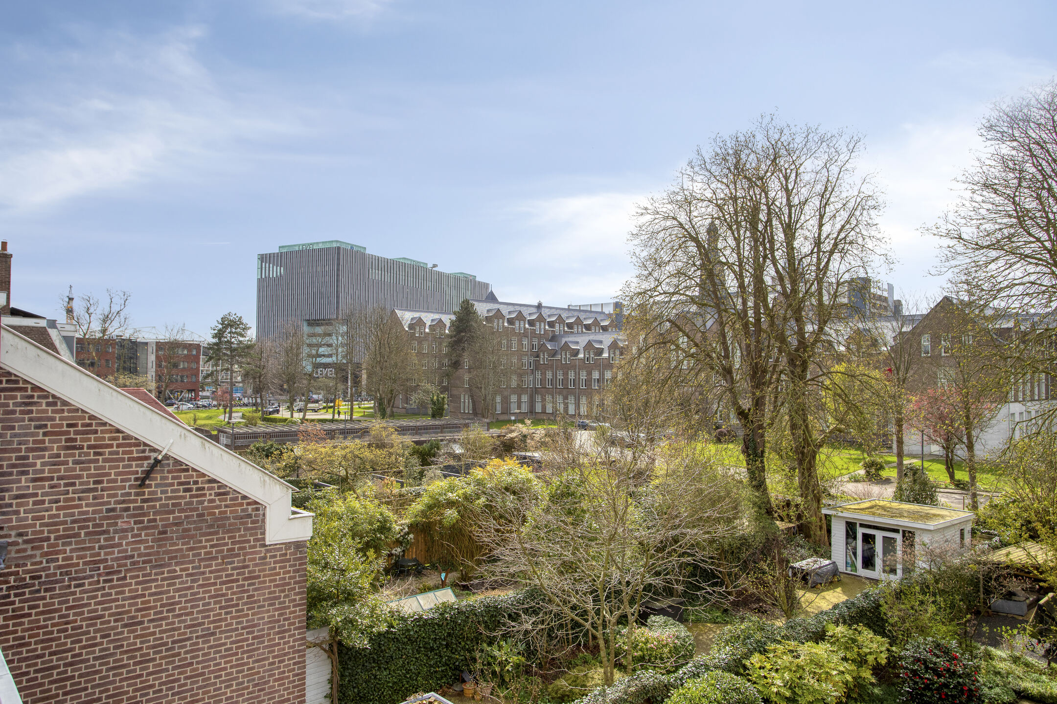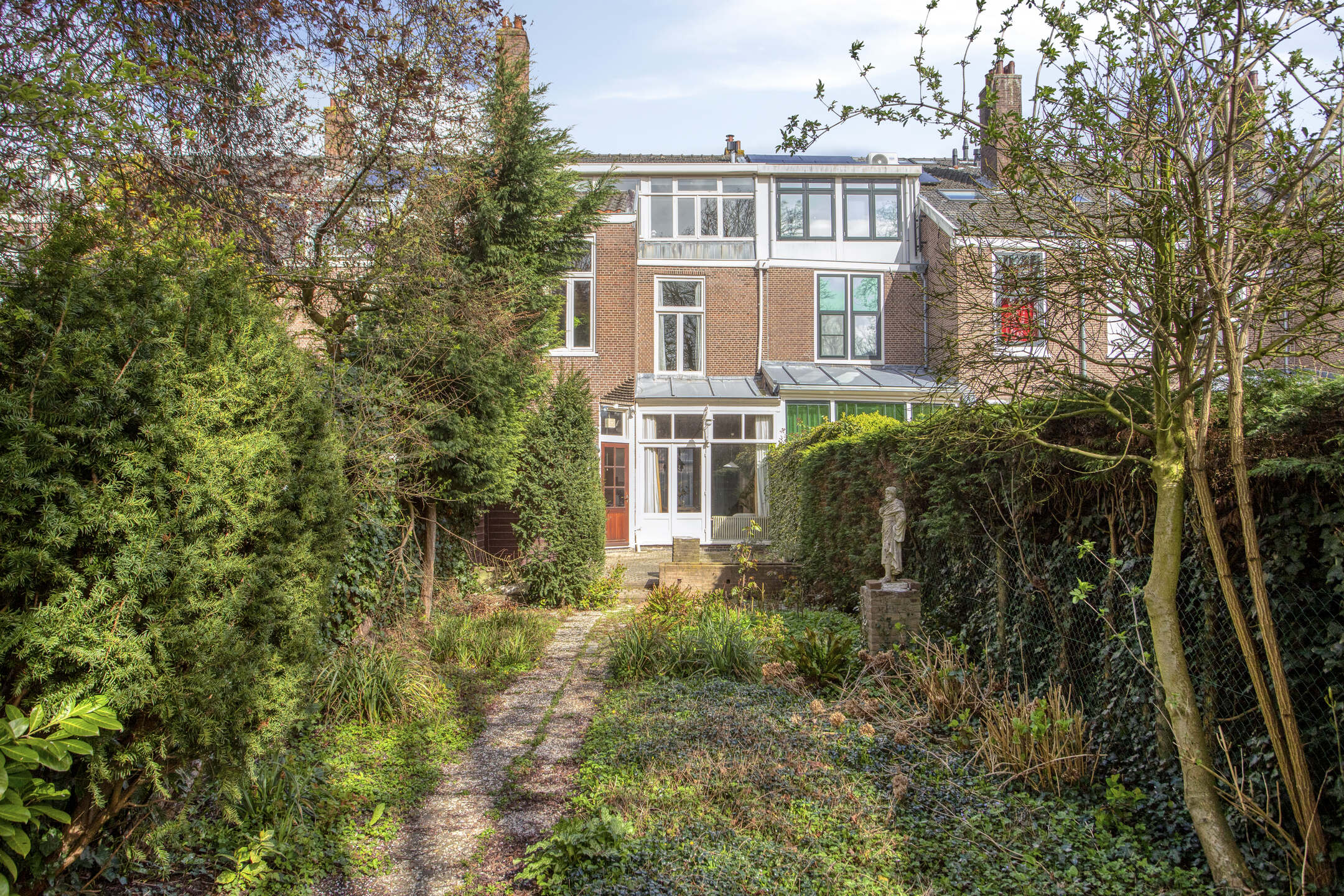 Deze zeer karakteristieke woning ligt op een steenworp afstand van het historische centrum van Leiden. Eind 19e eeuw werden voor de gegoede burgerij aan de uitvalswegen van de stad voorname woningen en villa’s gebouwd. Hier kon men zowel genieten van de nabijheid van de stad, als van het groen en de buitenruimte. Ondanks dat er sindsdien veel tijd is verstreken en de omgeving door de groeiende stad inmiddels bijna tot het centrum behoort, is het groene karakter bewaard gebleven. Niet alleen is de achtertuin zeer diep, maar achter de tuin ligt ook nog eens een zeer groot afgesloten perceel (1318 m²) dat met de buren wordt gedeeld. Een verborgen pareltje met speelveld, trampoline en ligplaatsen voor bootjes. Vanuit hier vaar je via de Mare naar de Kaag of het centrum. Ook de bekende stijlvormen die de woningen uit deze bouwperiode zo voornaam maken zijn hier nog bewaard gebleven: hoge plafonds, grote en hoge raampartijen en veel detaillering in gevels, stucwerk, trappen en deuren.
