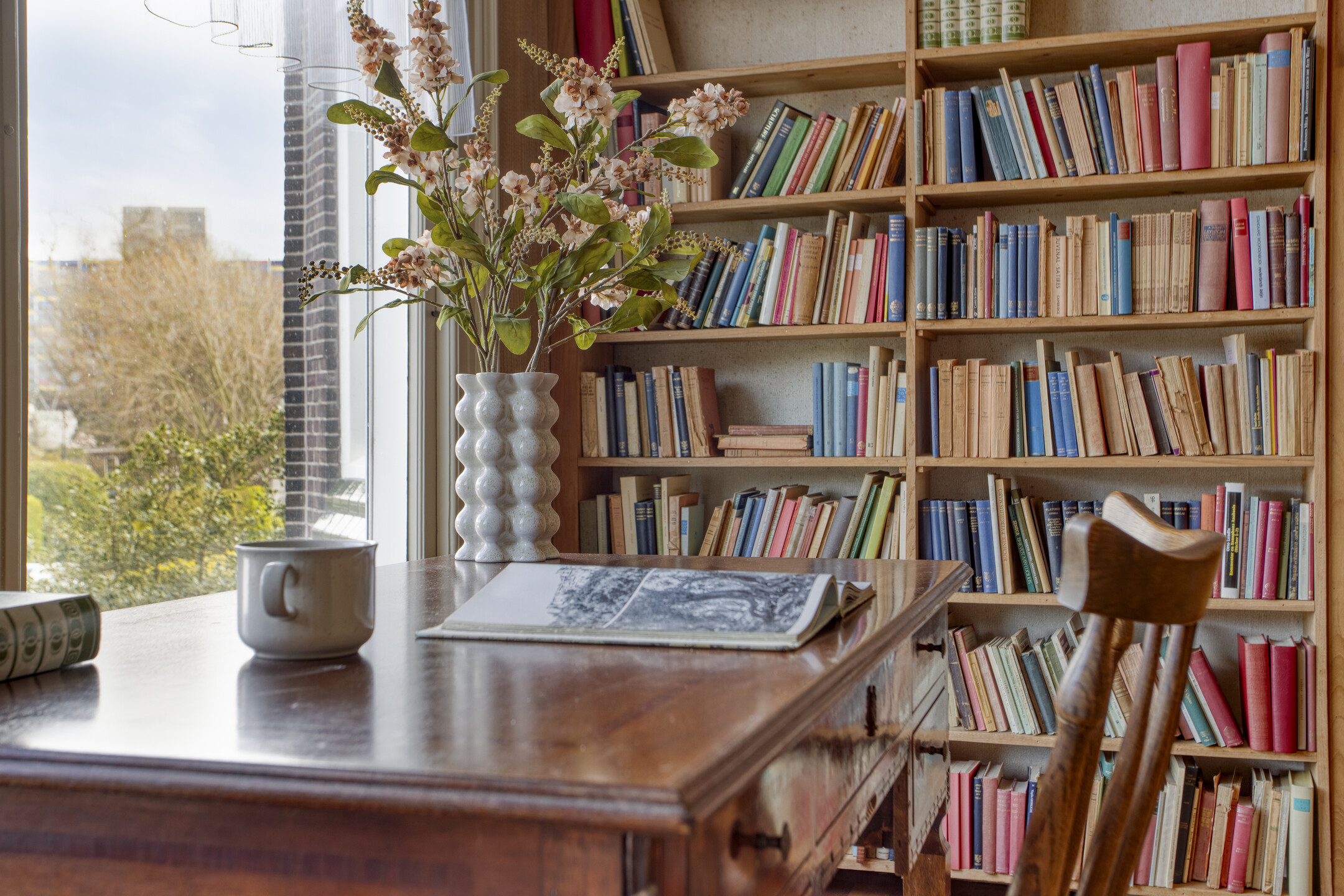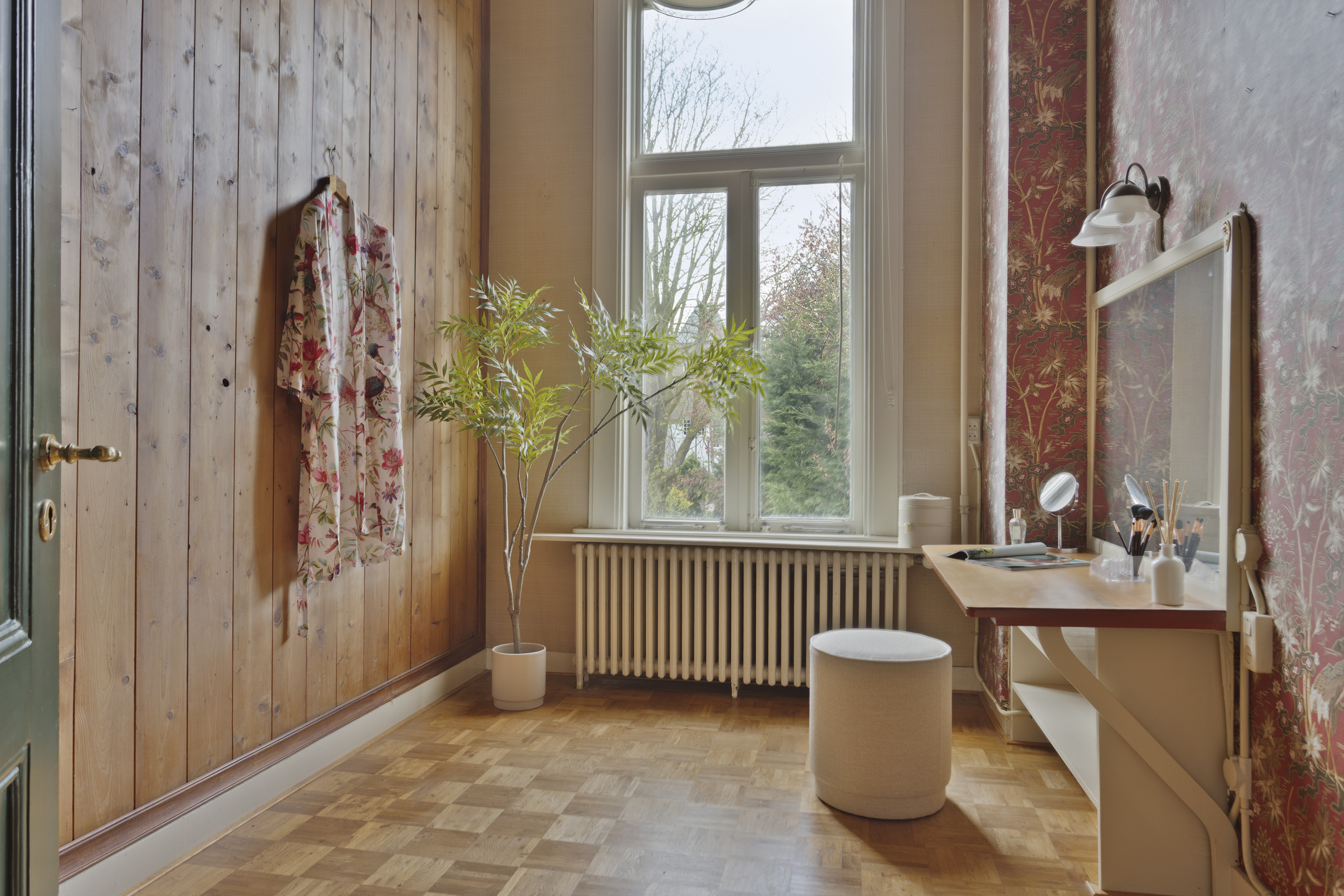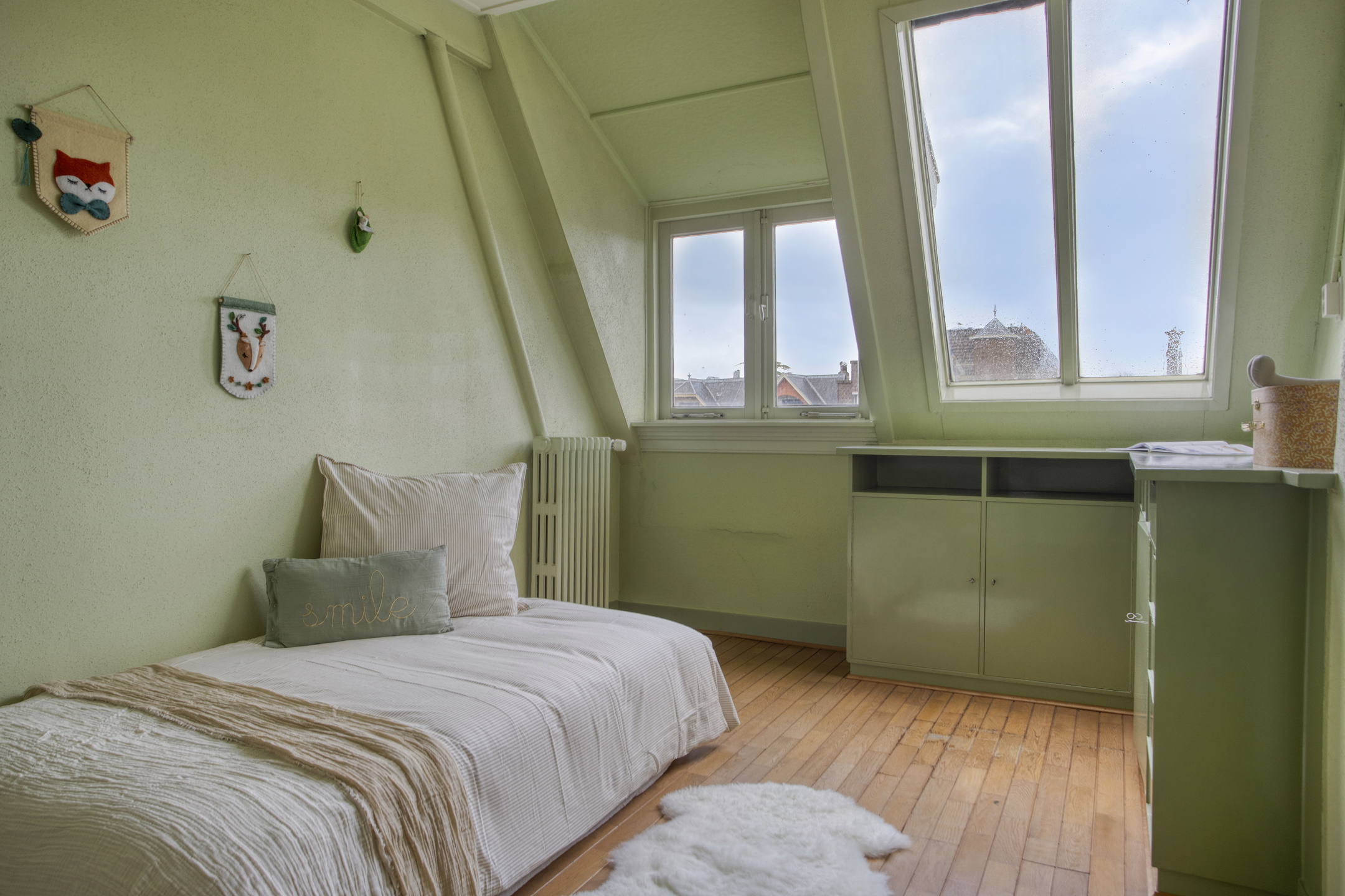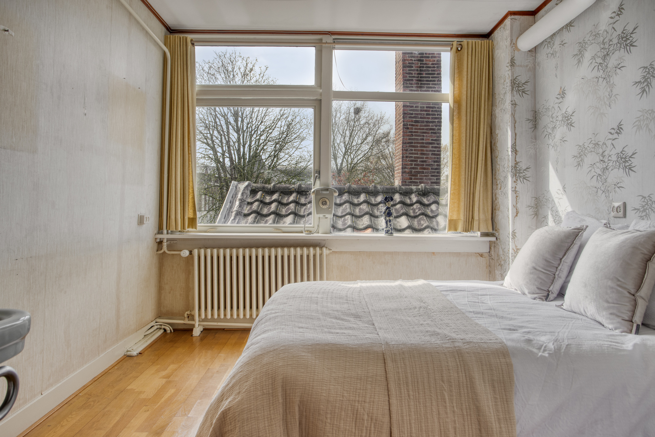 Deze zeer karakteristieke woning ligt op een steenworp afstand van het historische centrum van Leiden. Eind 19e eeuw werden voor de gegoede burgerij aan de uitvalswegen van de stad voorname woningen en villa’s gebouwd. Hier kon men zowel genieten van de nabijheid van de stad, als van het groen en de buitenruimte. Ondanks dat er sindsdien veel tijd is verstreken en de omgeving door de groeiende stad inmiddels bijna tot het centrum behoort, is het groene karakter bewaard gebleven. Niet alleen is de achtertuin zeer diep, maar achter de tuin ligt ook nog eens een zeer groot afgesloten perceel (1318 m²) dat met de buren wordt gedeeld. Een verborgen pareltje met speelveld, trampoline en ligplaatsen voor bootjes. Vanuit hier vaar je via de Mare naar de Kaag of het centrum. Ook de bekende stijlvormen die de woningen uit deze bouwperiode zo voornaam maken zijn hier nog bewaard gebleven: hoge plafonds, grote en hoge raampartijen en veel detaillering in gevels, stucwerk, trappen en deuren.