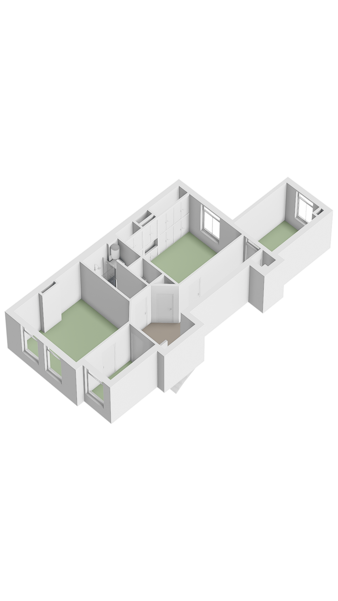 Ruime overloop. Twee slaapkamers aan voorzijde en twee slaapkamers aan achterzijde.