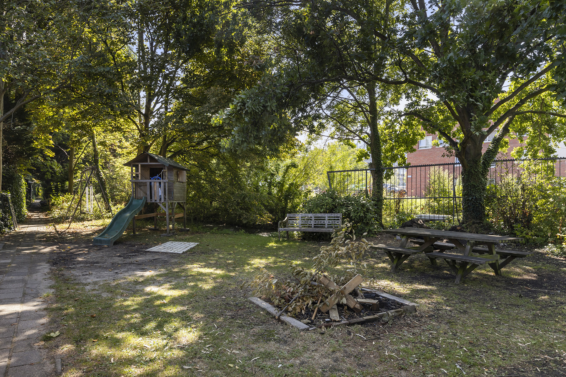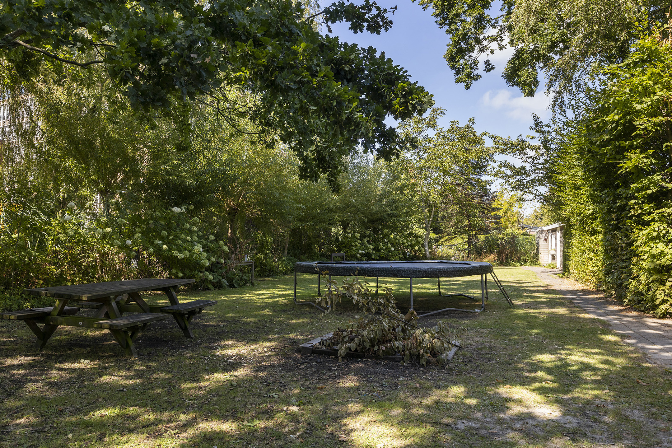Bij mooi weer gaan de deuren open en is het buiten genieten. De tuin ligt op het zeer gunstige zuidwesten, ofwel perfect op de zon. Geen achterburen, dus beter kan niet! Ben je toch meer liefhebber van schaduw? Omliggend zijn er veel hoge bomen, waardoor je niet alleen mooi uitzicht hebt maar ook altijd wel een plekje zonder zon. Het echte unicum is wel het achtergelegen perceel. Onder de bomen staat een picknicktafel waar je heerlijk kunt gaan zitten, terwijl (klein) kinderen op schommel of trampoline spelen. Ideaal voor kinderfeestjes of een gezellige BBQ met de andere bewoners uit de straat. Zijn de kinderen wat ouder? Dan kunnen ze het bootje pakken en op het water gaan klooien. Of je vaart zelf even naar de Kaag of het centrum van Leiden.