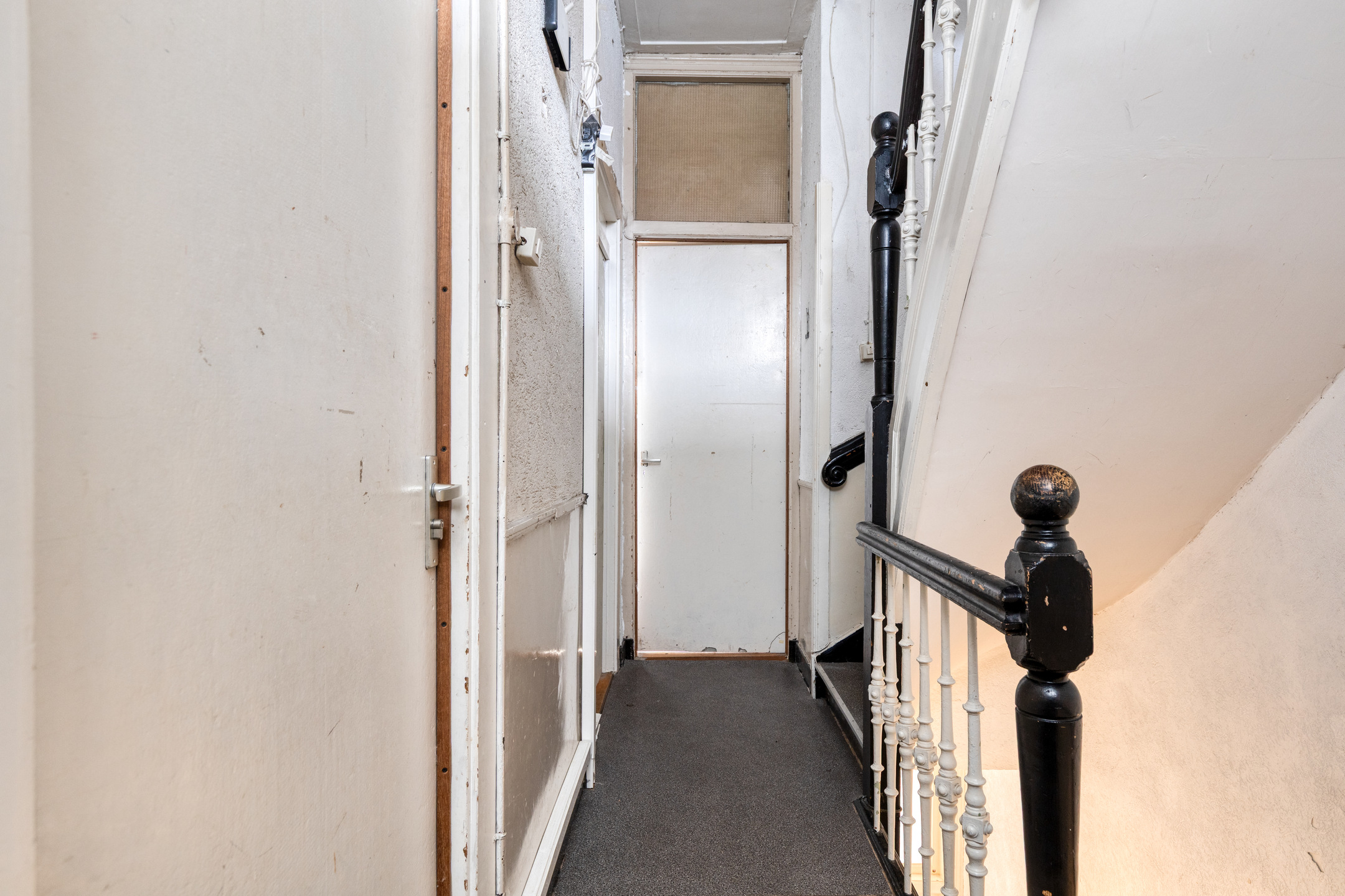 Via de entree met hal en trapopgang bereik je de ruime woonkamer aan de voorzijde. De hoge plafonds en grote ramen zorgen voor veel licht en een gevoel van ruimte. Aangrenzend ligt een tweede zit- of eetkamer, eveneens royaal bemeten. De dichte keuken bevindt zich aan de tuinzijde en biedt toegang tot het terras. Verder zijn er op de begane grond een toiletruimte, trapkast en extra bergruimte aanwezig.