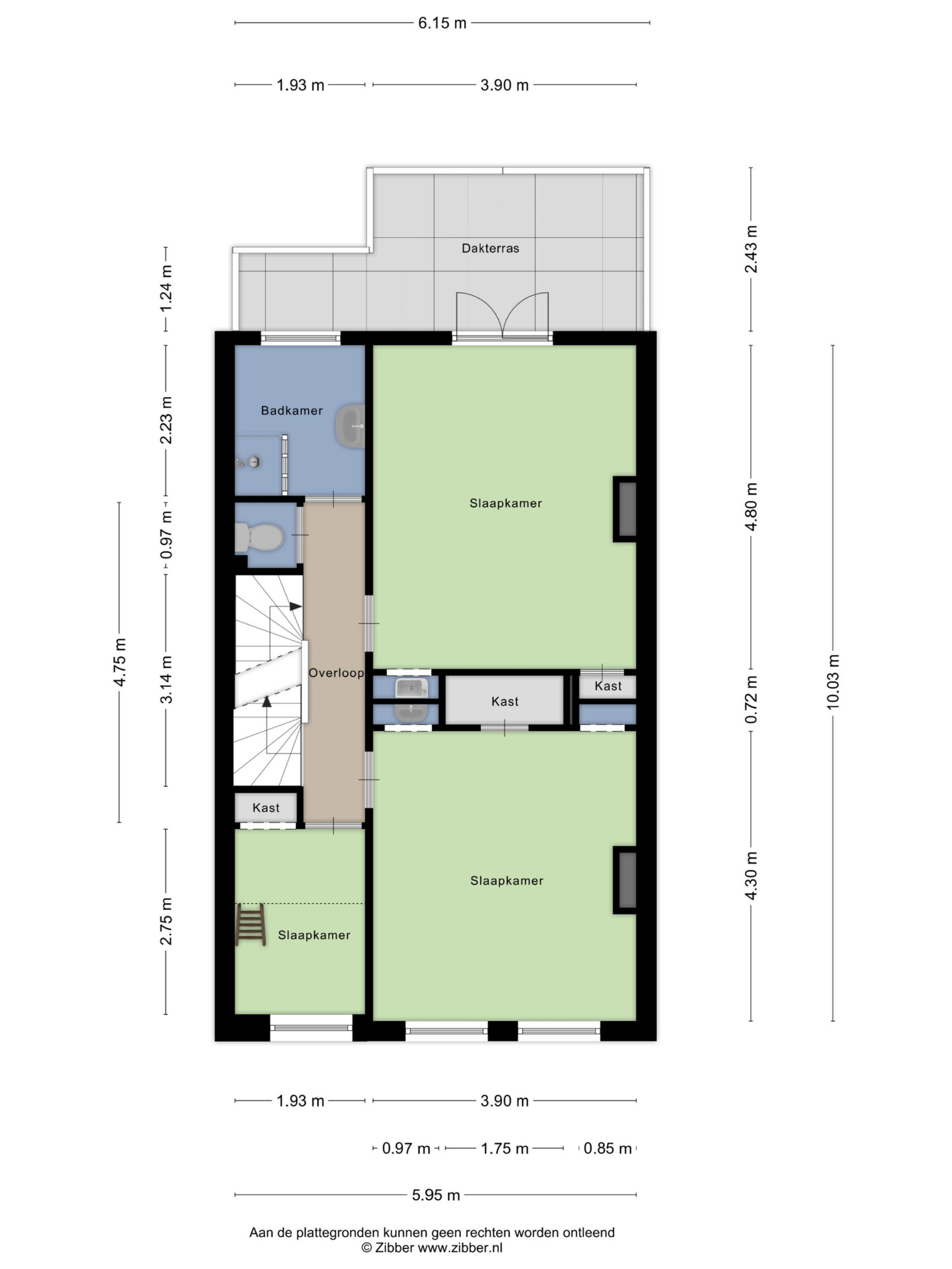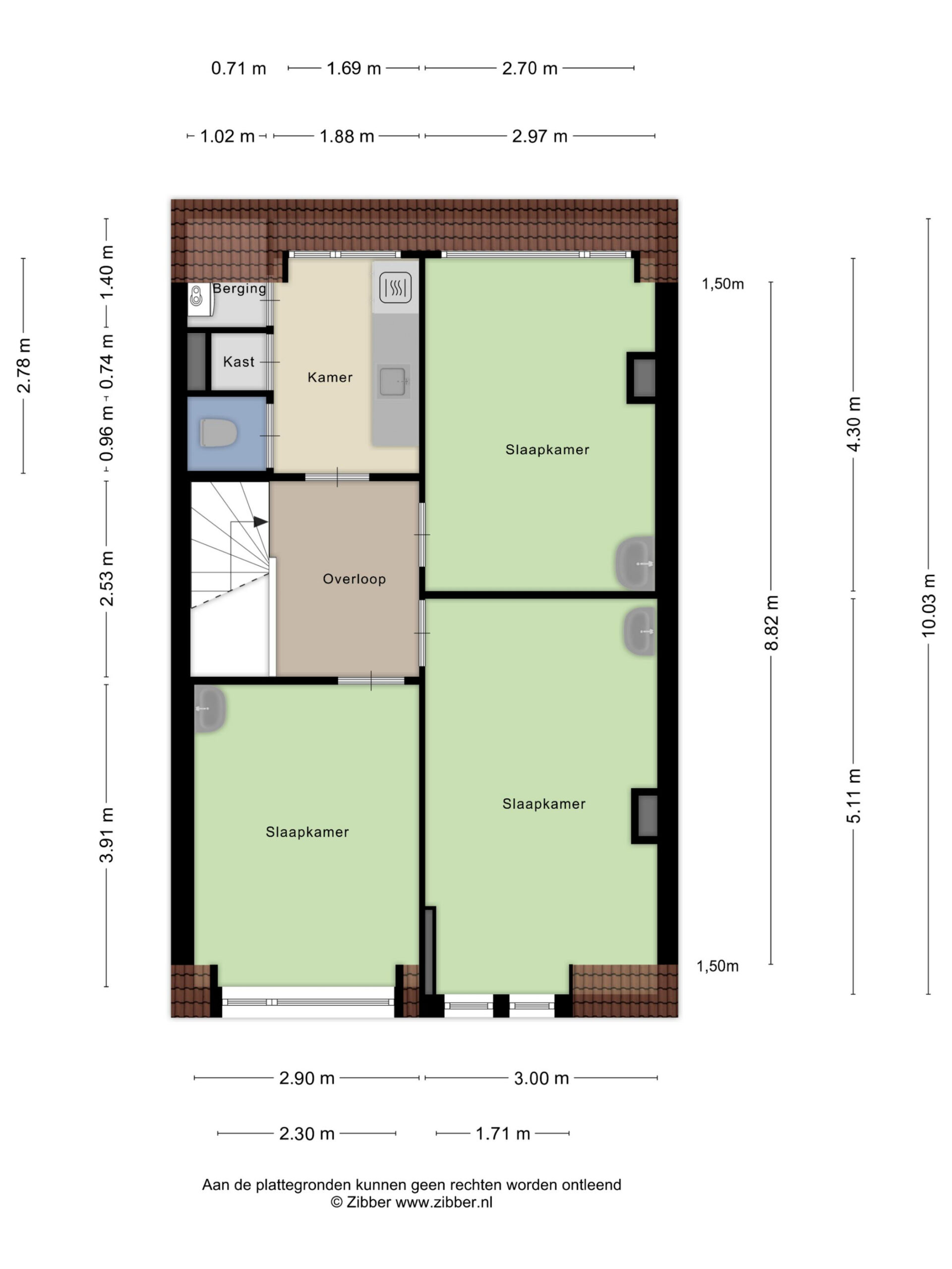 De overloop geeft toegang tot drie grote slaapkamers, allen volwaardige ruimtes. De badkamer bevindt zich aan de achterzijde, met daarnaast een separaat toilet. Aan de tuinzijde ligt bovendien een fraai dakterras van circa 12 m², dat prachtig uitzicht biedt over de enorme tuin.
