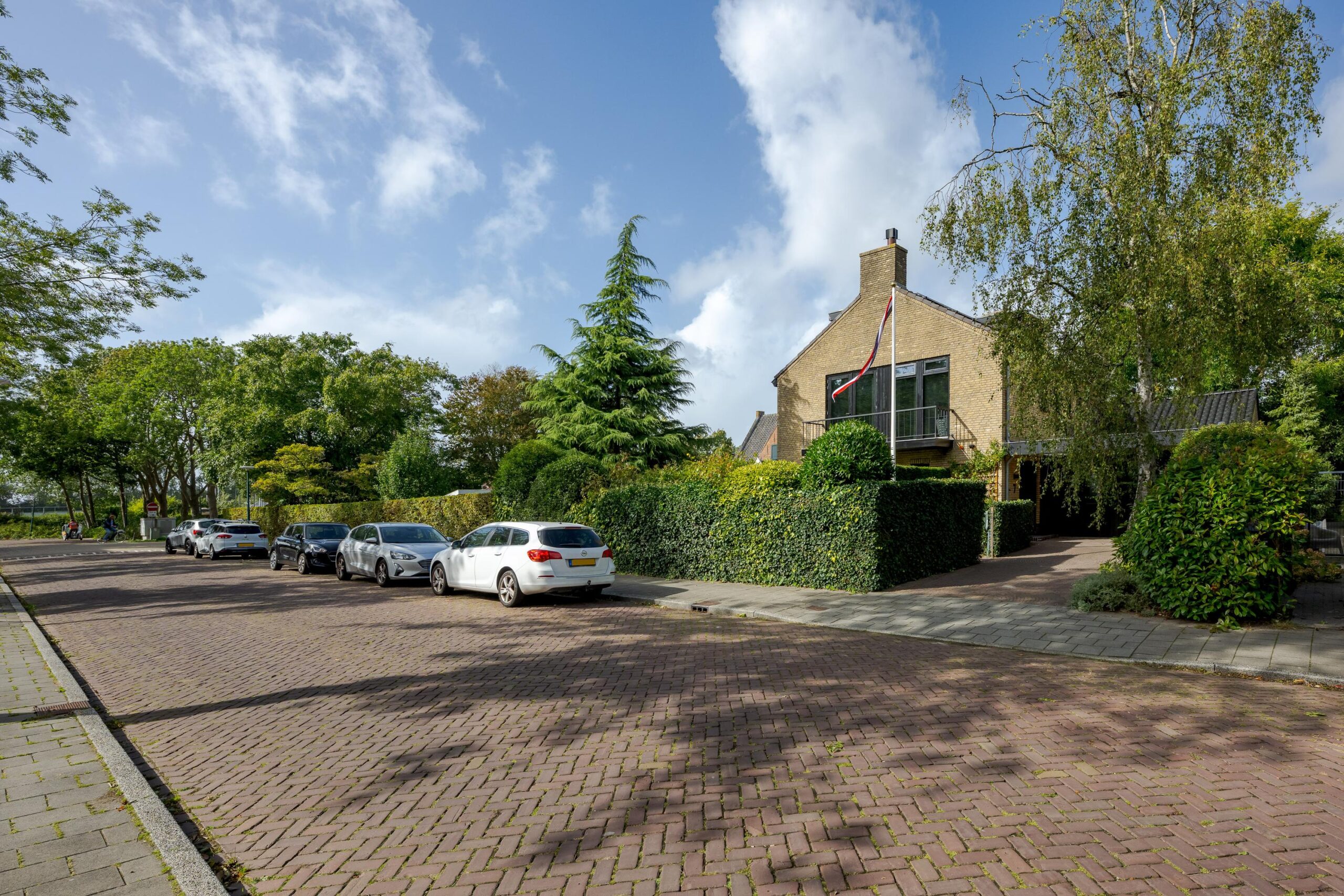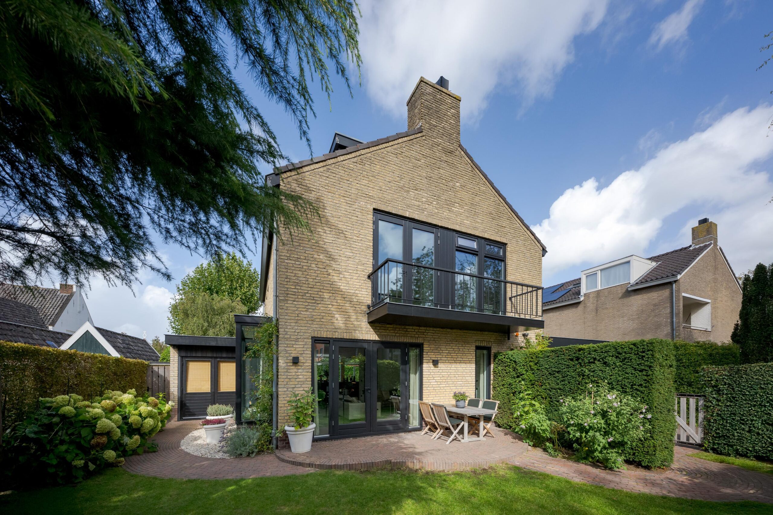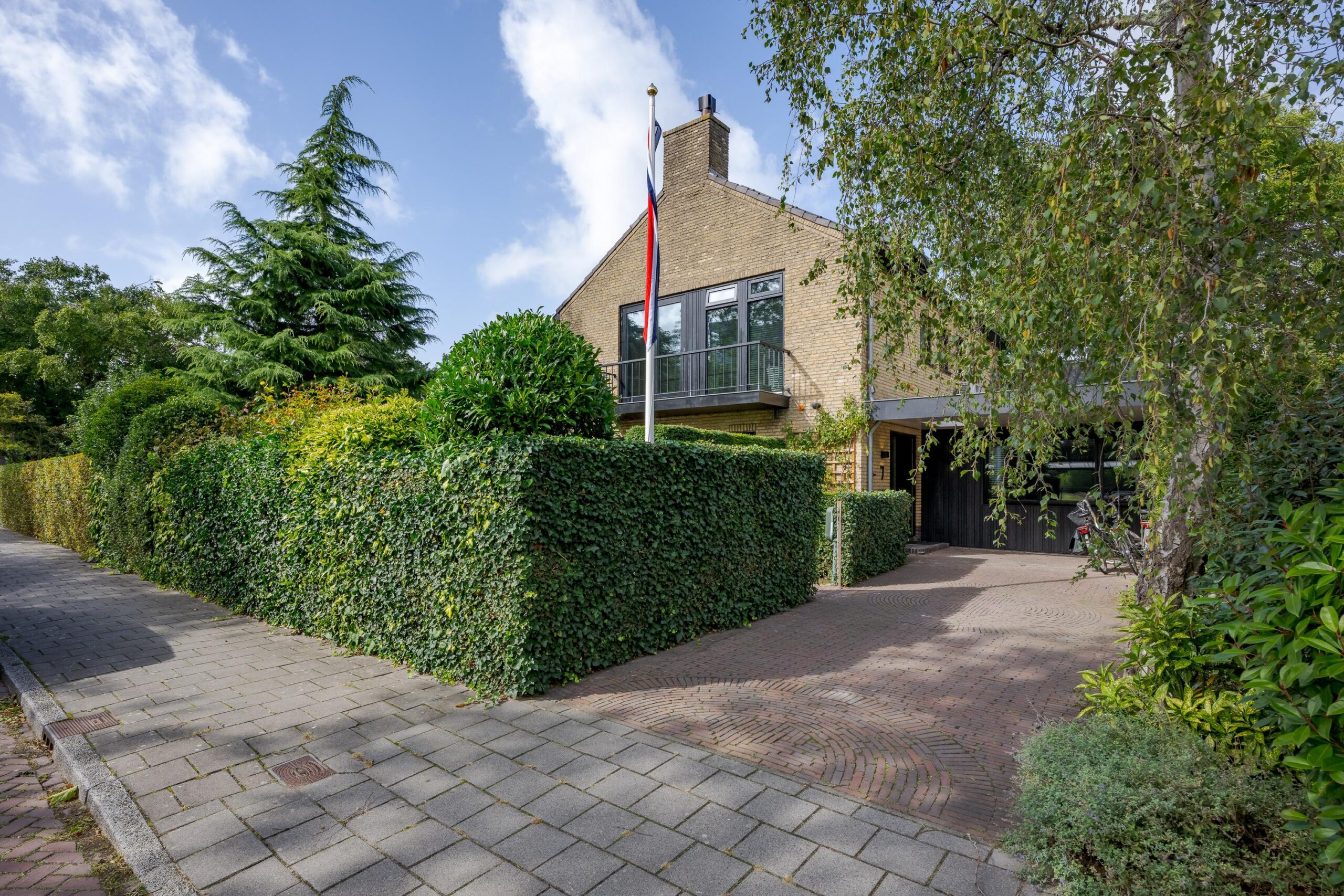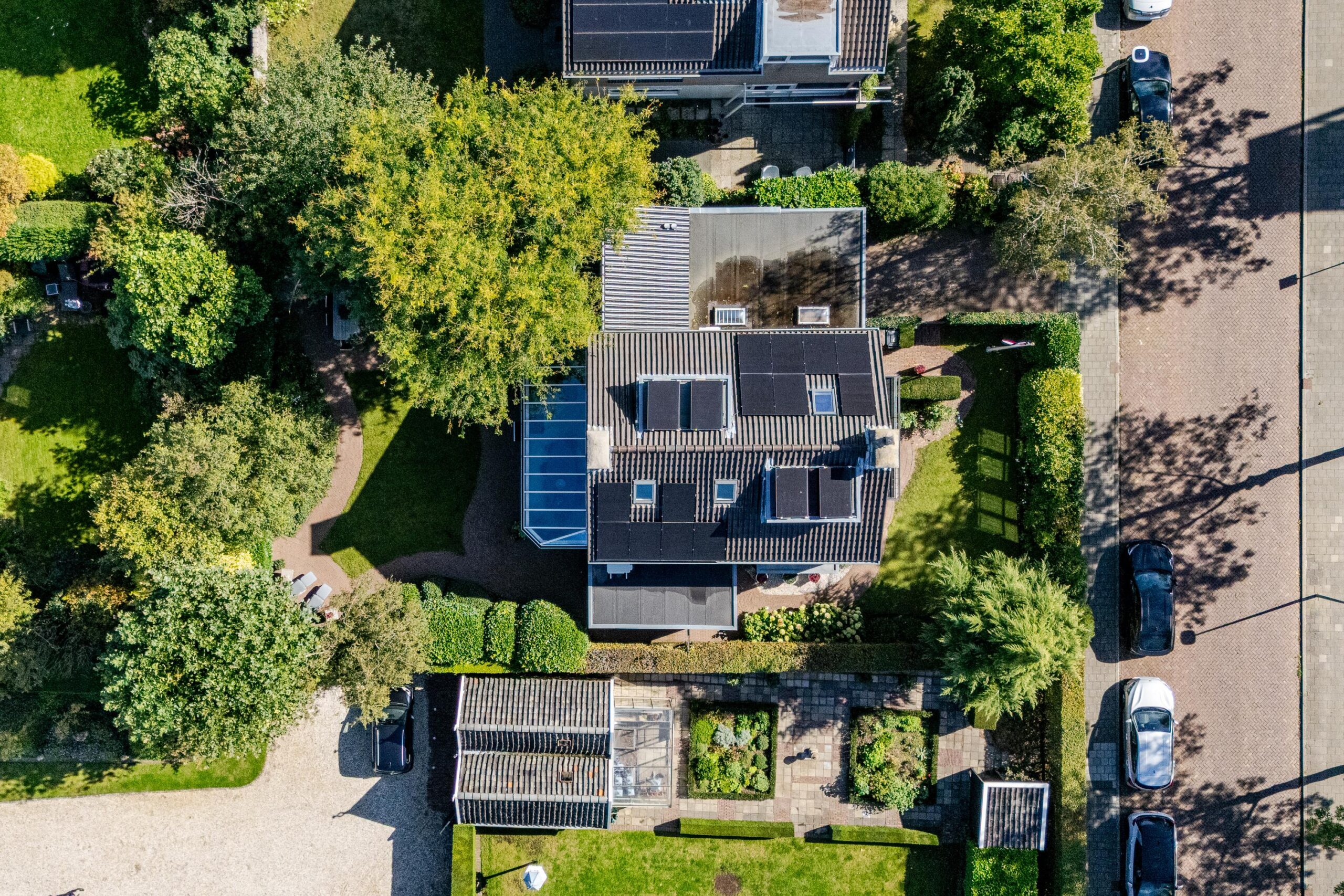 Daarnaast beschikt de woning over een ruime oprit met plaats voor meerdere auto’s, een oplaadpunt, een zonnige voortuin (ca. 100 m²) met beschut terras op het zuiden én een fraai aangelegde achtertuin (ruim 200 m²) op het westen en noorden, voorzien van meerdere terrassen en een irrigatiesysteem.