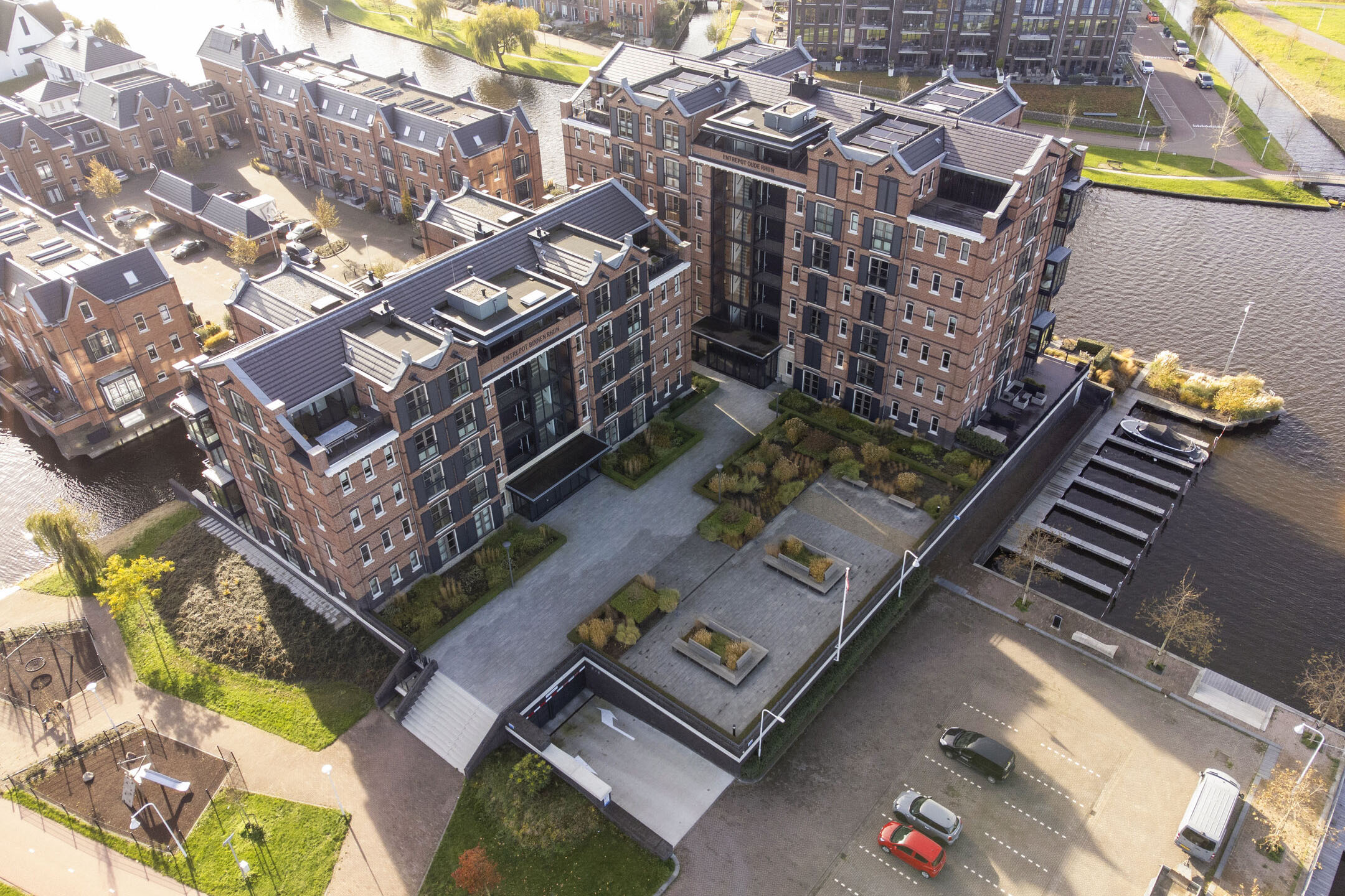 De locatie is ideaal met een basisschool, supermarkt, bakker, huisartsenpraktijk, apotheek en andere winkels letterlijk om de hoek. Sportverenigingen en een park liggen aan de overkant van het water. De gezellige winkelstraten van Oegstgeest en Leiden zijn binnen 10 minuten fietsen bereikbaar. Daarnaast is de A44 (richting Amsterdam, Den Haag, Rotterdam) in slechts 2 minuten te bereiken. Ook het strand van Katwijk ligt op minder dan 20 minuten fietsen. Bij aankomst met de fiets of auto heeft u de beschikking over een eigen parkeerplaats en een aparte berging in de parkeergarage onder het dakterras.