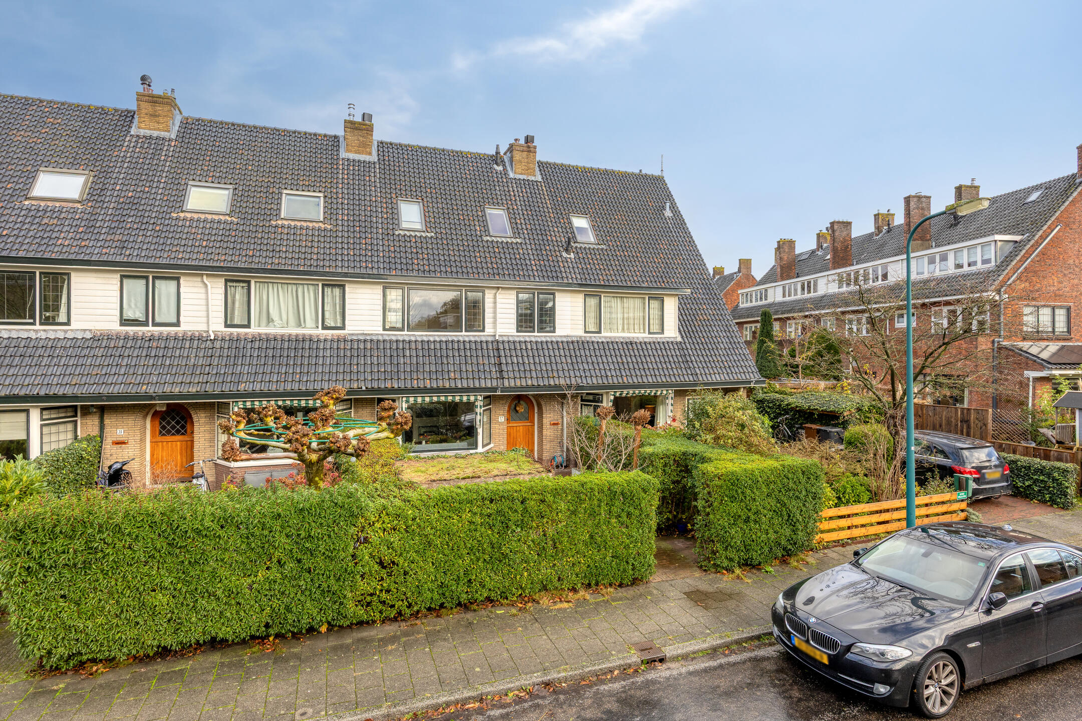 – Diepe en brede voortuin met zitje én overkapte fietsenberging
