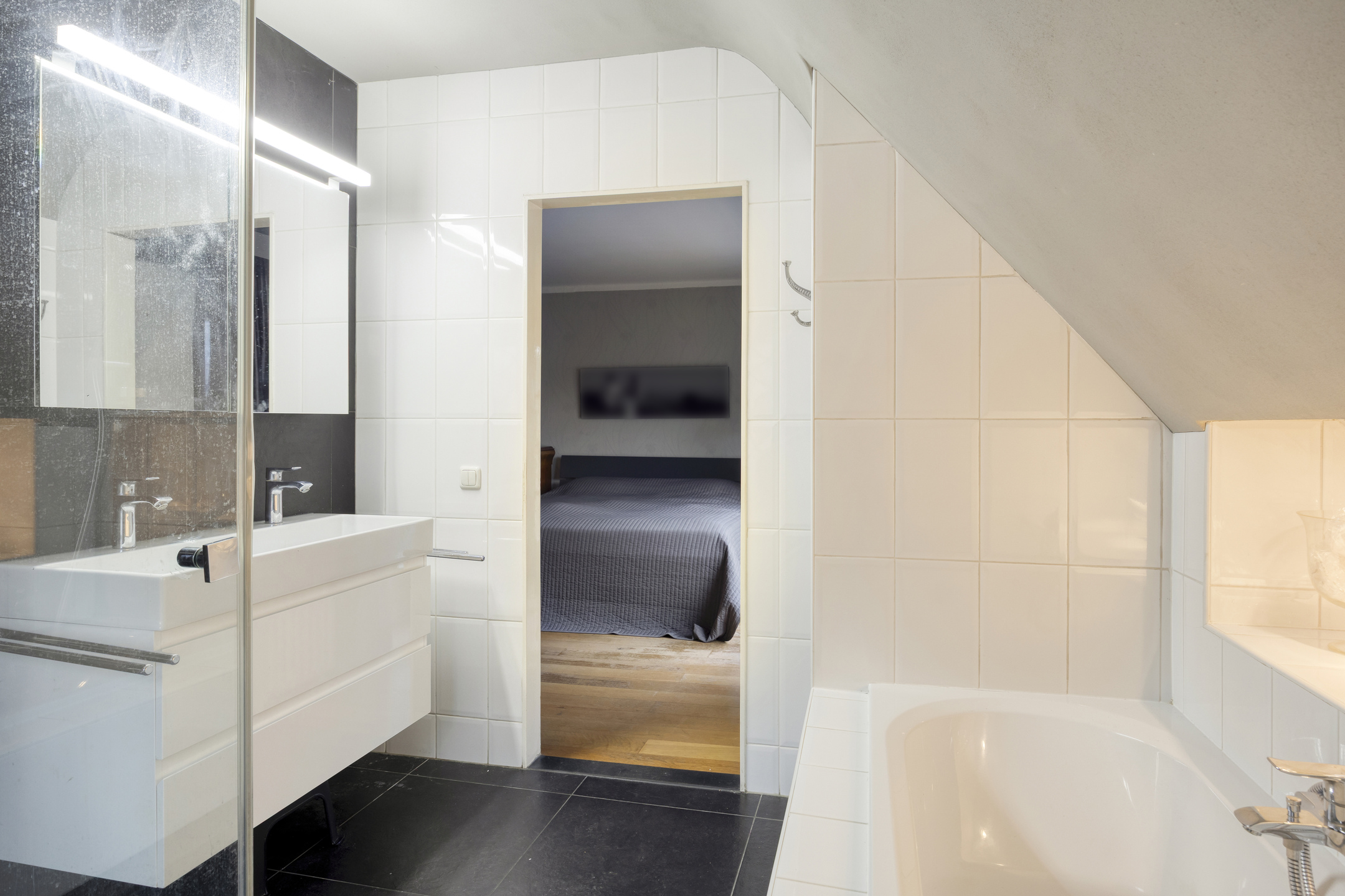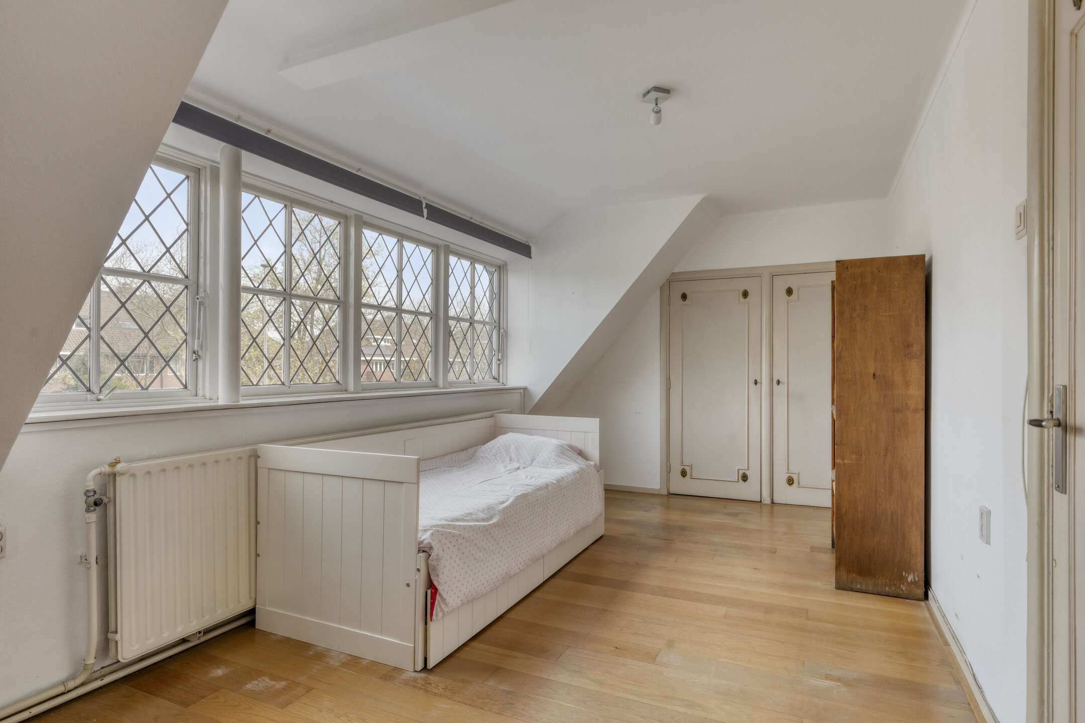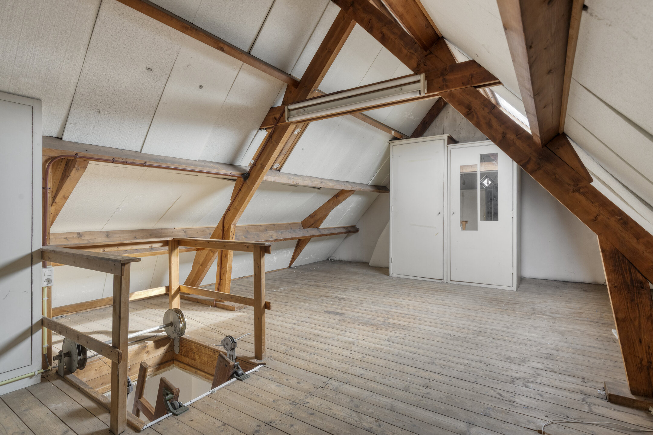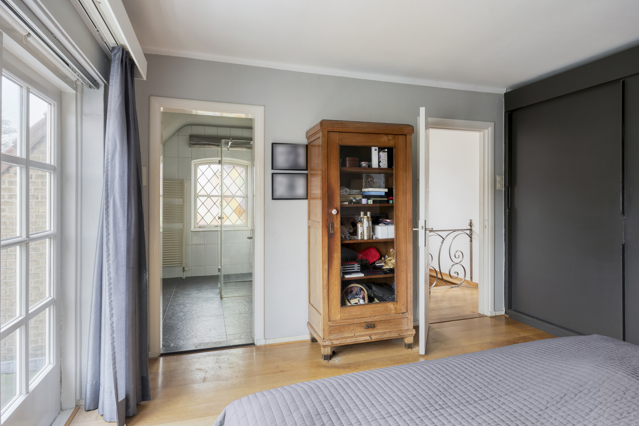Ruime en lichte overloop met toegang tot een slaapkamer aan de voorzijde en een slaapkamer met dakterras en badkamer ensuite aan de achterzijde. Er is een vlizotrap die je zou kunnen vervangen door een vaste trap, waardoor je op de zolder nog twee extra slaapkamers zou kunnen creëren.