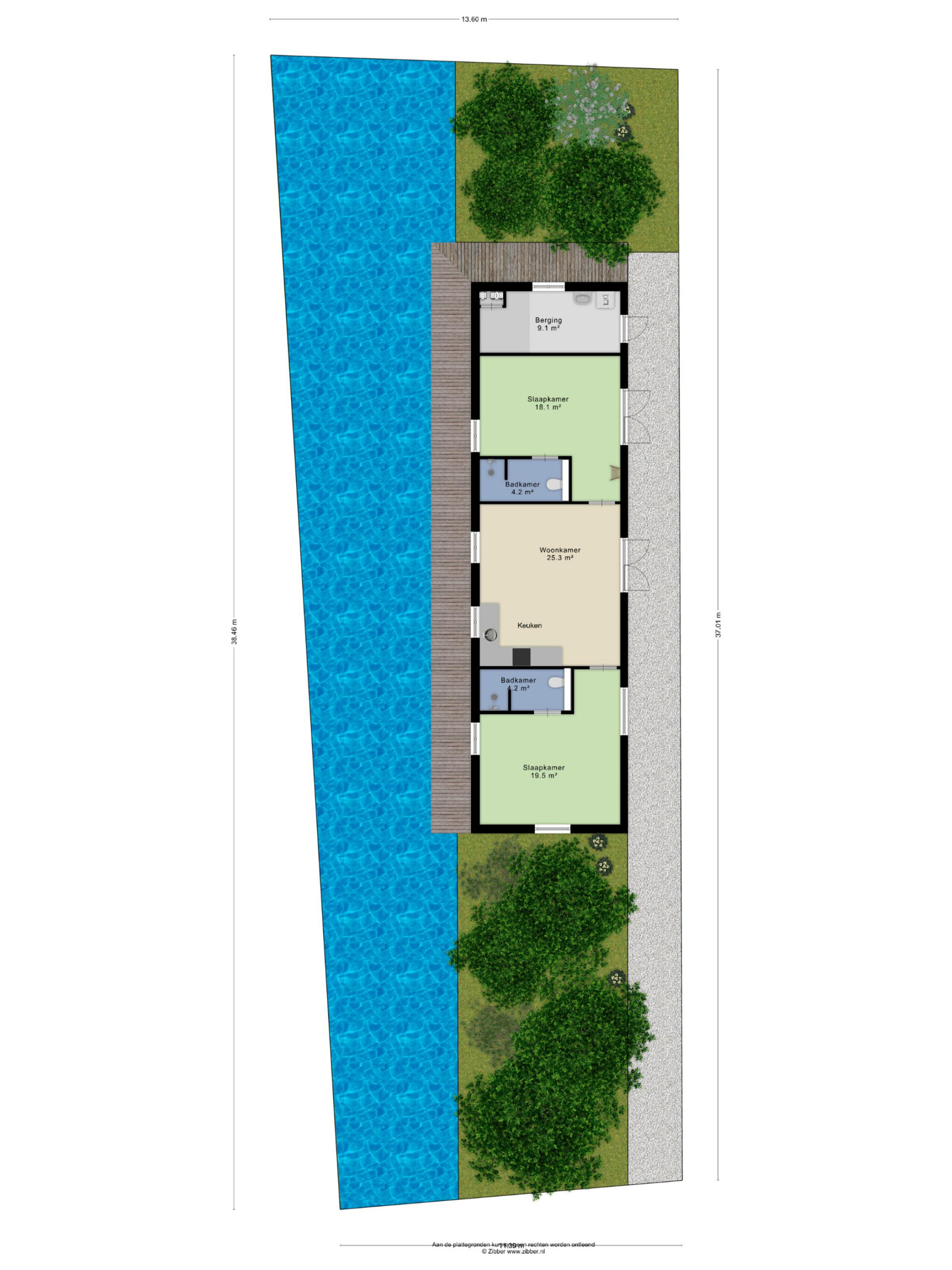 Wat deze woning verder zo aantrekkelijk maakt is onder andere de ruimte eromheen. Aan de noordzijde is ruimte om meerdere auto’s te parkeren op eigen terrein. Aan de zuidzijde bevindt zich de tuin met perfecte bezonning en privacy. Aan de achterzijde van de woning loopt een lange steiger langs de sloot waar ook een leuk ‘zitje’ te creëren is. Én… op een minuutje lopen is de eigen aanlegsteiger in de ‘Rijpwetering’ van waar je in no-time op de Koppoel bent en het verdere plassengebied van De Kaag.